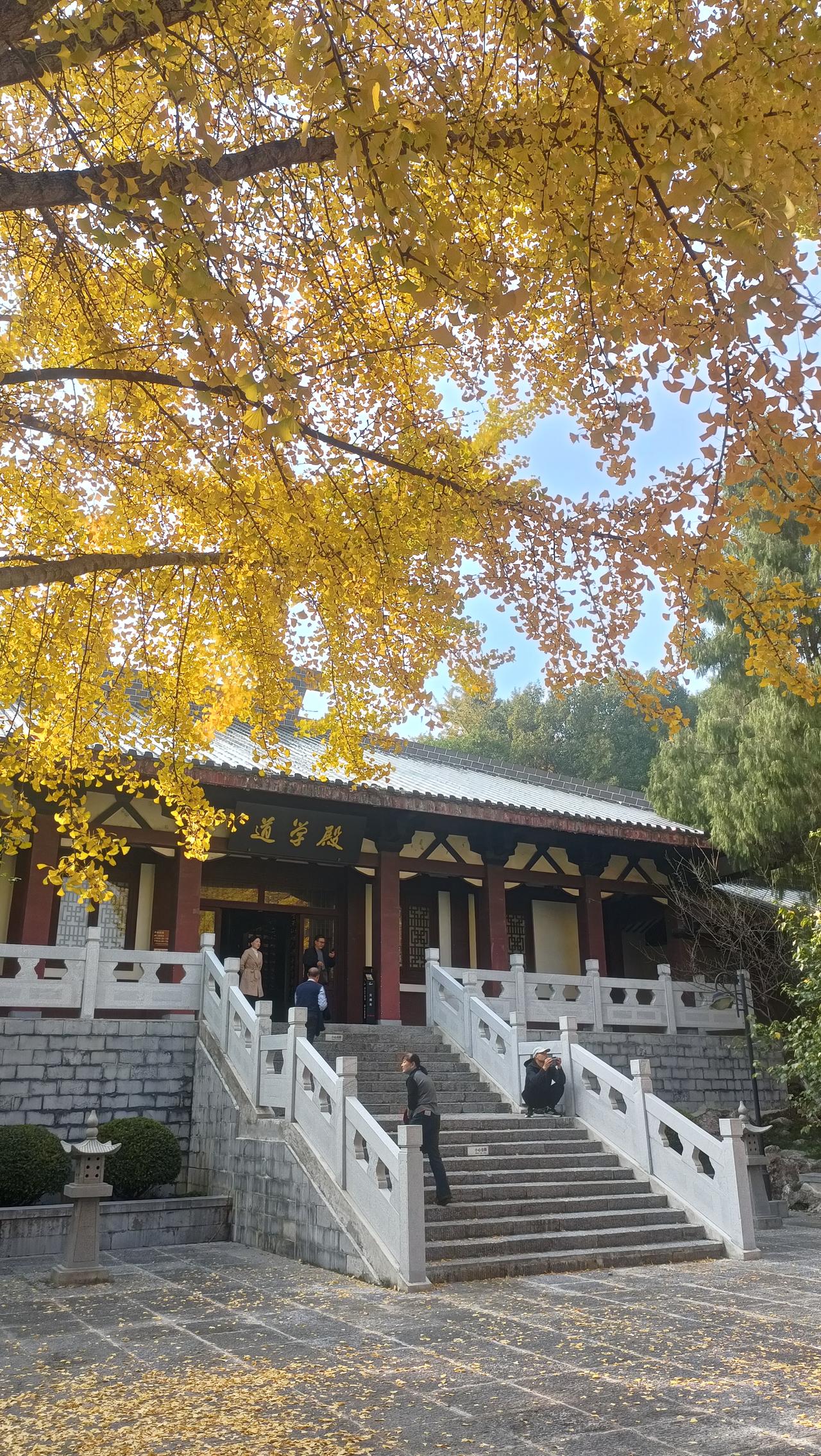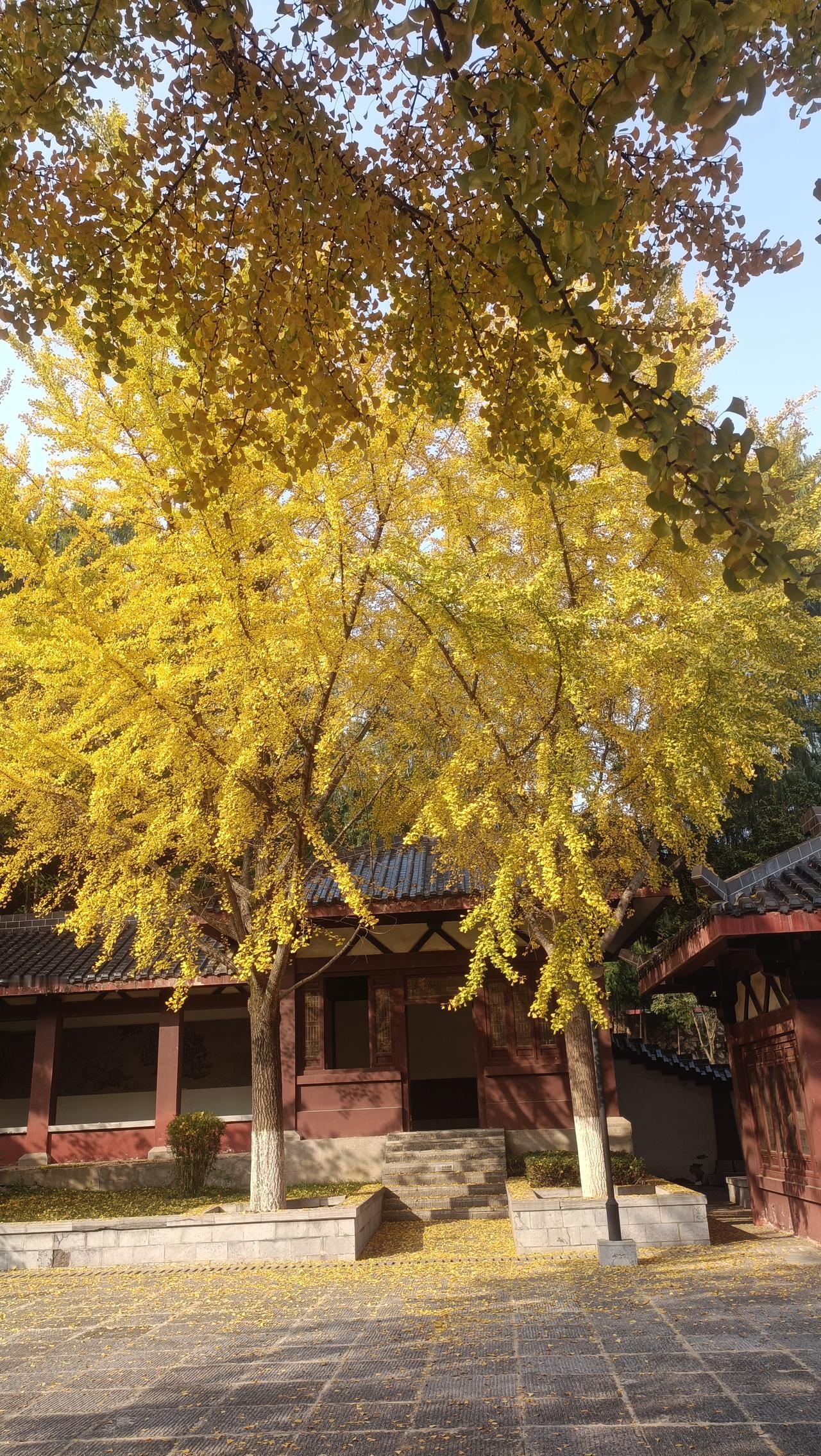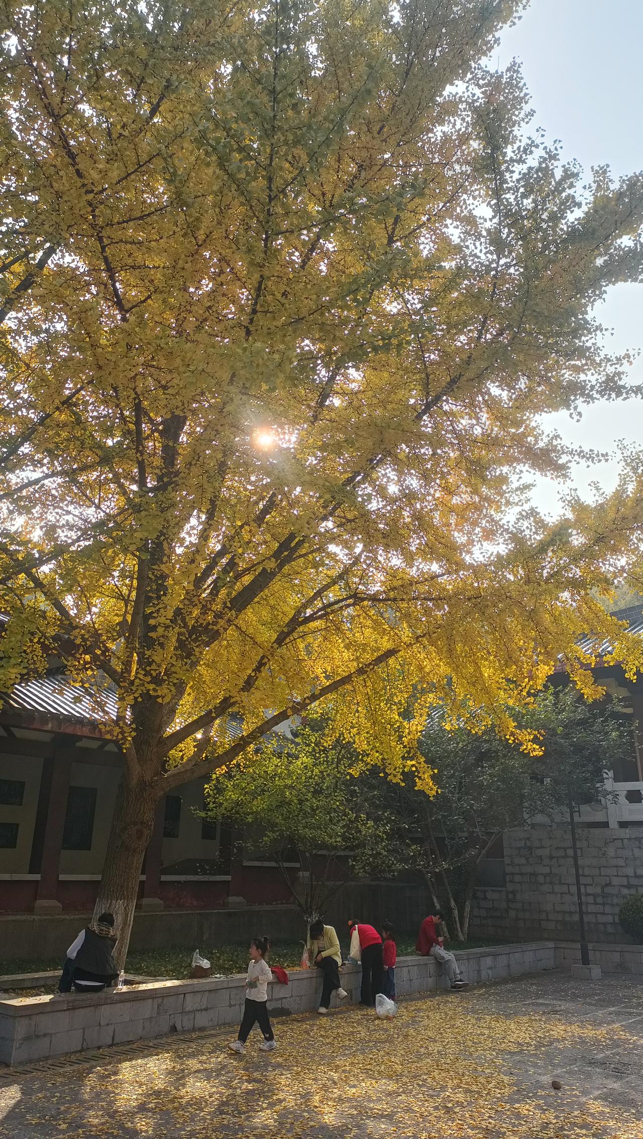 秋天是五彩斑斓的季节 把这个世界染成画 在午后的阳光里 我登上龙泉公园的后山 这里有个老莱子纪念馆 不曾想院内的两株大银杏树 叶子都已经变得黄灿灿 阳光撒在树上,从枝头穿过 这一抹金黄惹人醉 把银杏刻成诗 每个路过的人都要朗诵一遍 这个秋天好香