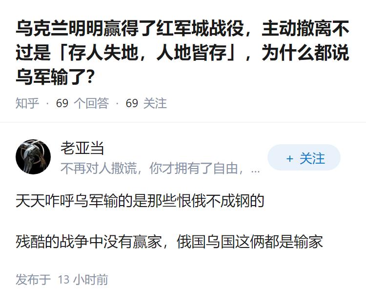 乌克兰明明赢得了红军城战役,主动撤离不过是「存人失地,人地皆存」,为什么都说乌军输了?