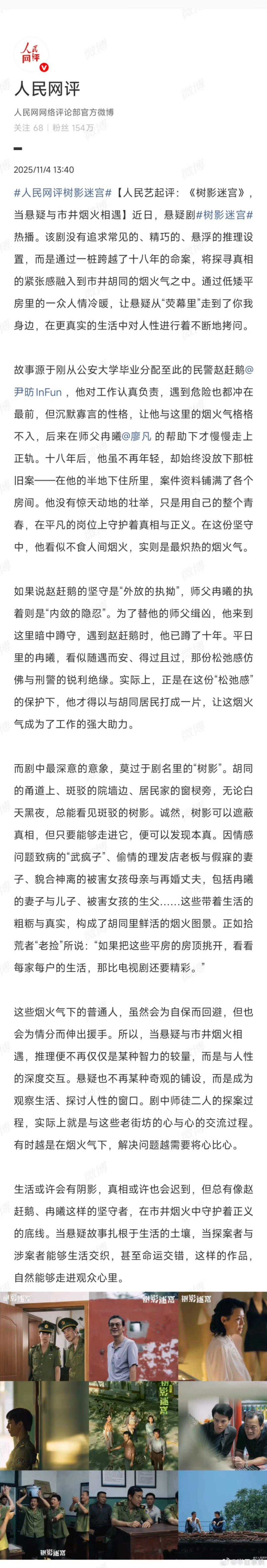 人民网评树影迷宫 果然名不虚传!《树影迷宫》把悬疑藏进胡同烟火,剧情扑朔迷离、反转不断,真相难辨让人根本停不下来!