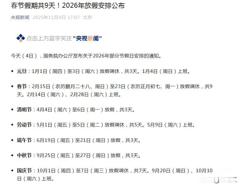 7个假日调了6天,有点多啊! 元旦慷慨一点,直接四天咋啦? 看到网友锐评:“调休是当代最伟大的行为艺术:假装给你自由,再亲手没收。”