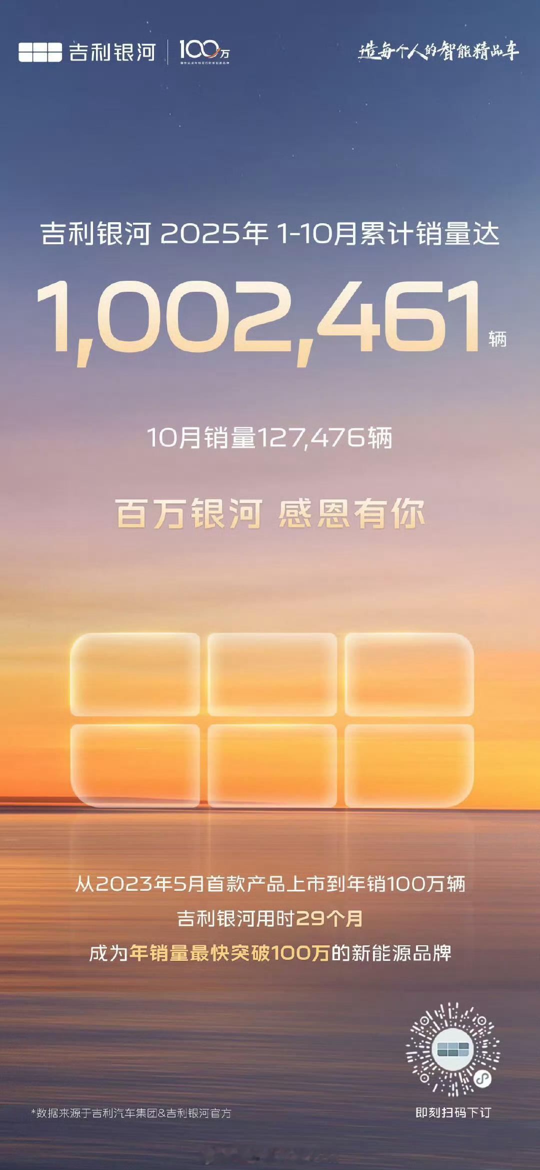 吉利银河10月单月销量达127476辆,