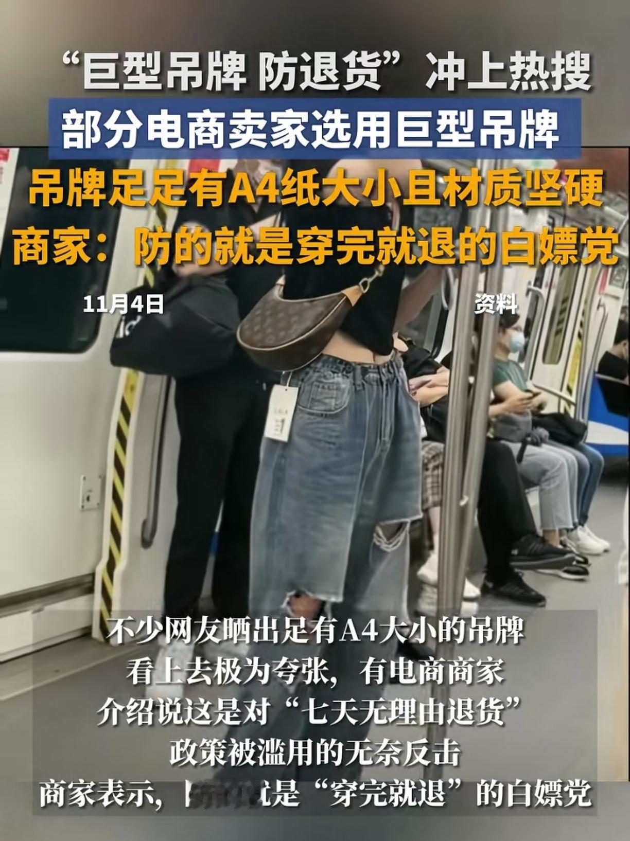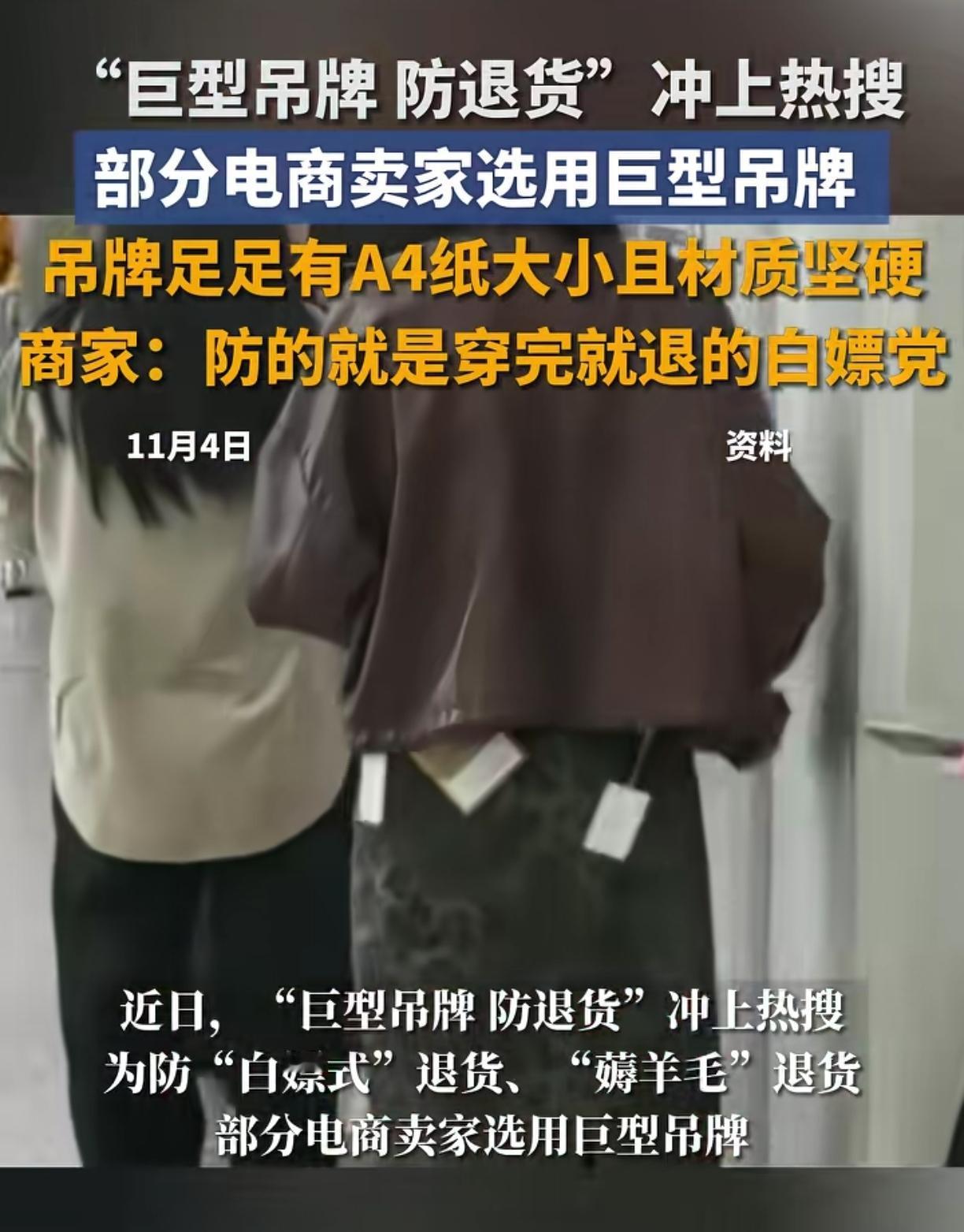 衣服上的巨型吊牌来了,这下那些白嫖党们还作妖吗? 七天无理由退货可以满足,但试穿