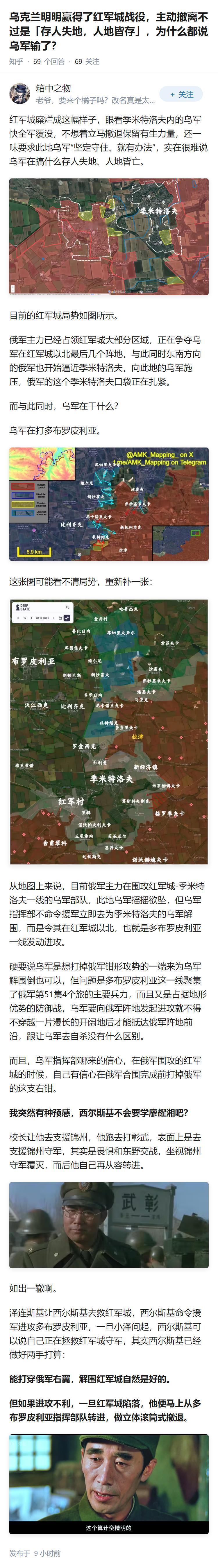 乌克兰明明赢得了红军城战役,主动撤离不过是「存人失地,人地皆存」,为什么都说乌军输了?