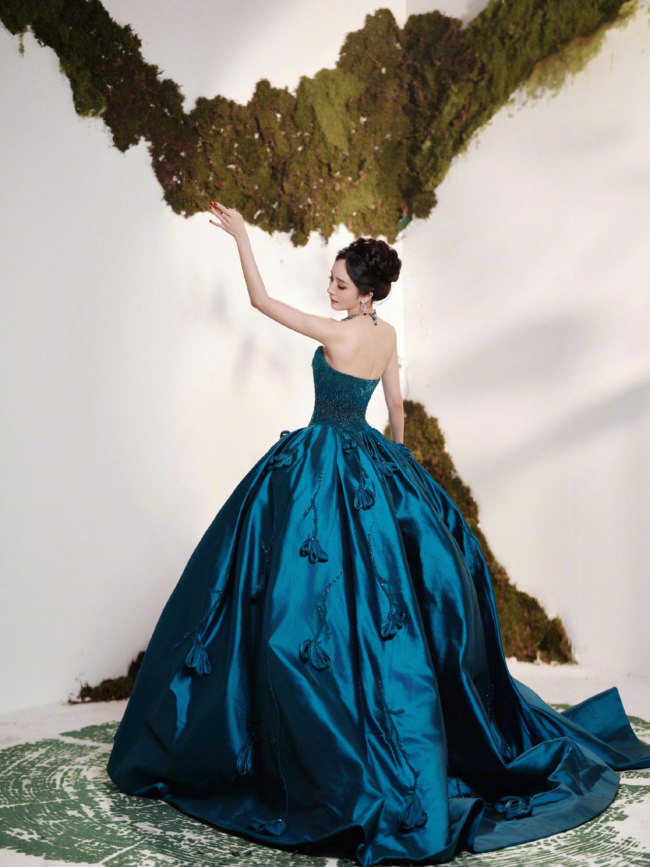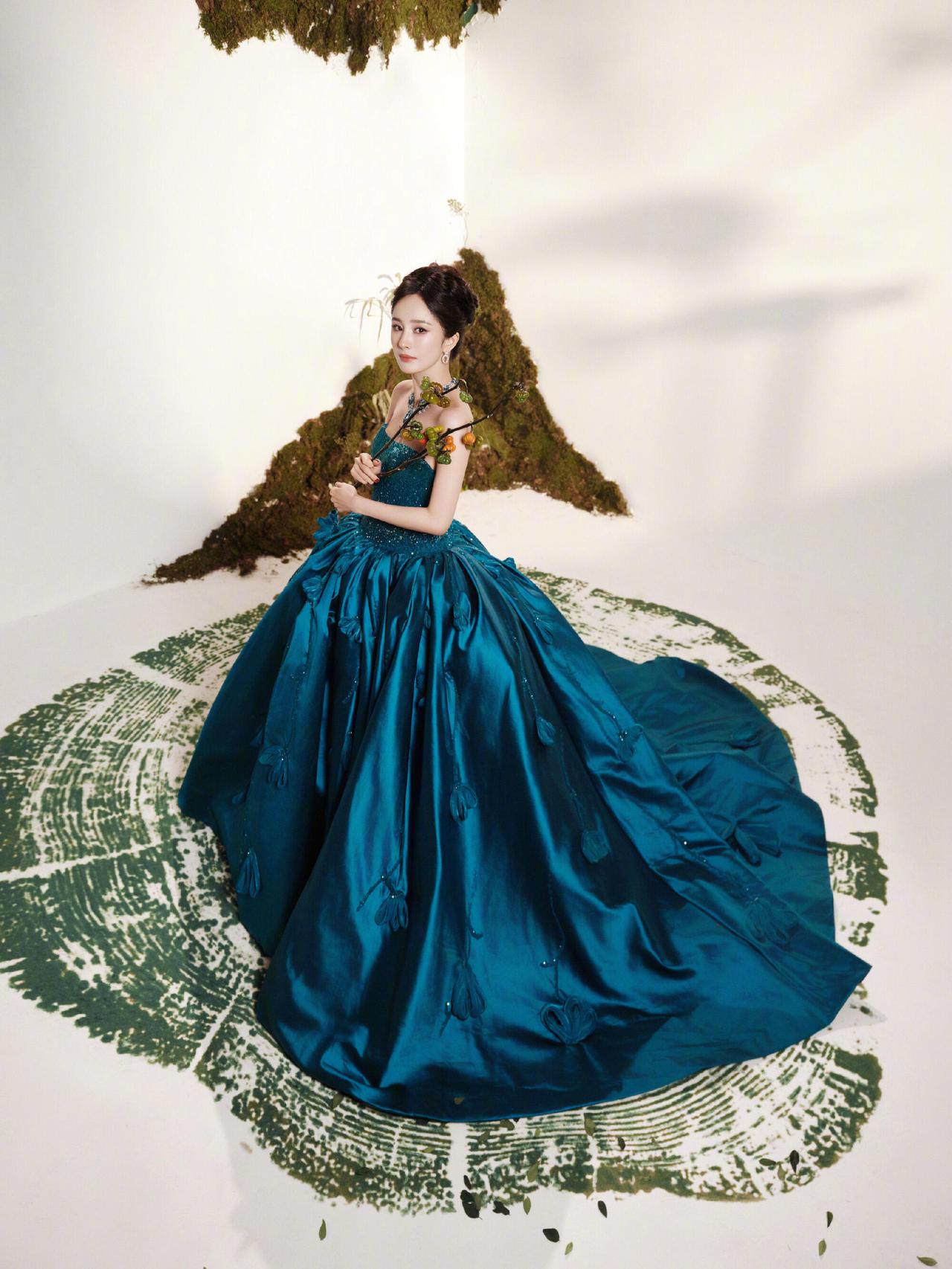 杨幂这身Tony Ward 2025秋冬礼服太戳“宫廷公主感”了!孔雀蓝缎面裙身+立体花苞装饰,自带华贵光泽;搭配Chopard蓝钻珠宝,衬得整个人像从复古油画里走出来的贵族公主,是“贵气典雅”的造型天花板~杨幂