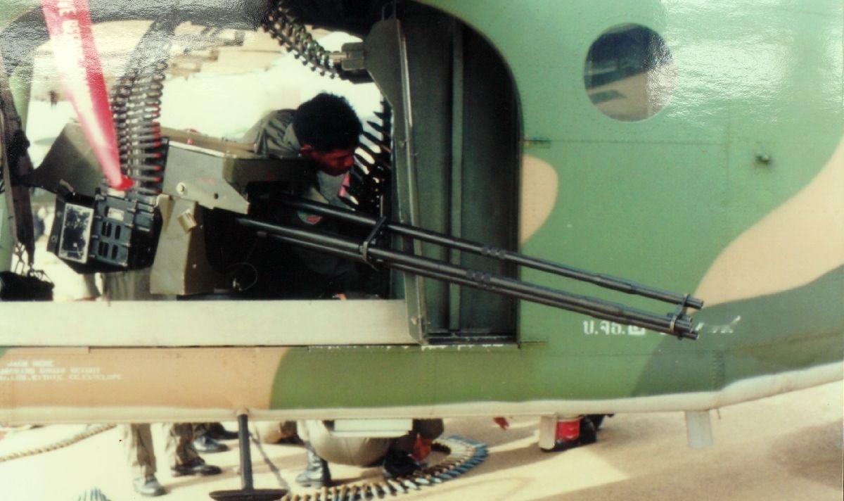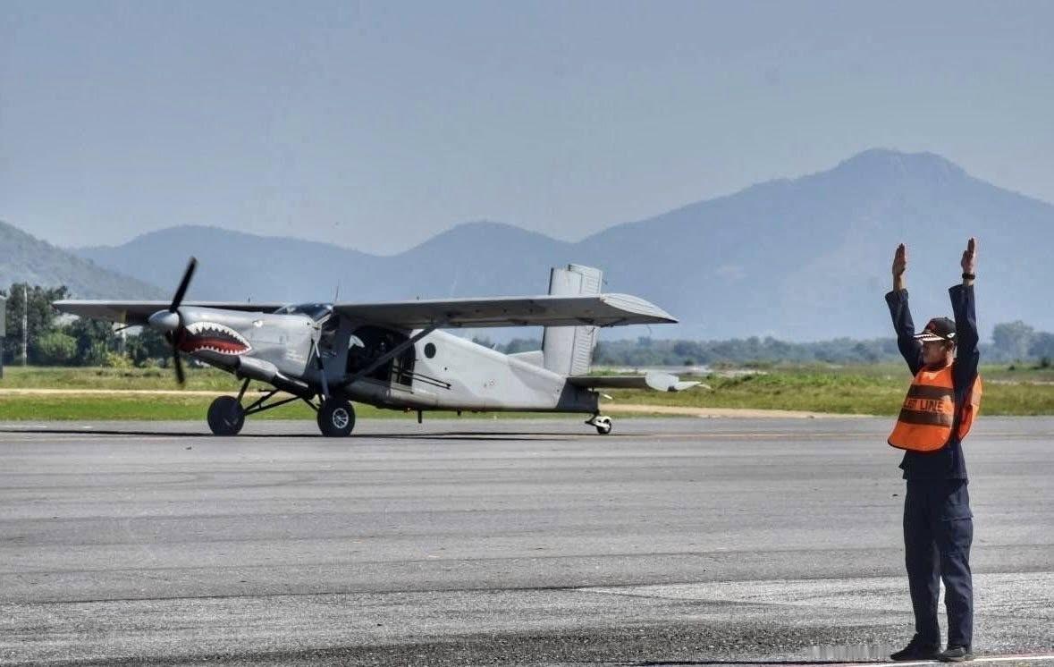 执行灾情调查任务的泰国空军的AU-23A (又称和平制造者)飞机,比较少见的装了一门三管20毫米M197转管航炮,AU-23是美国费尔柴尔德公司开发的一种涡轮螺旋桨单发COIN(反叛乱)和多用途飞机,主要用于支援地面部队