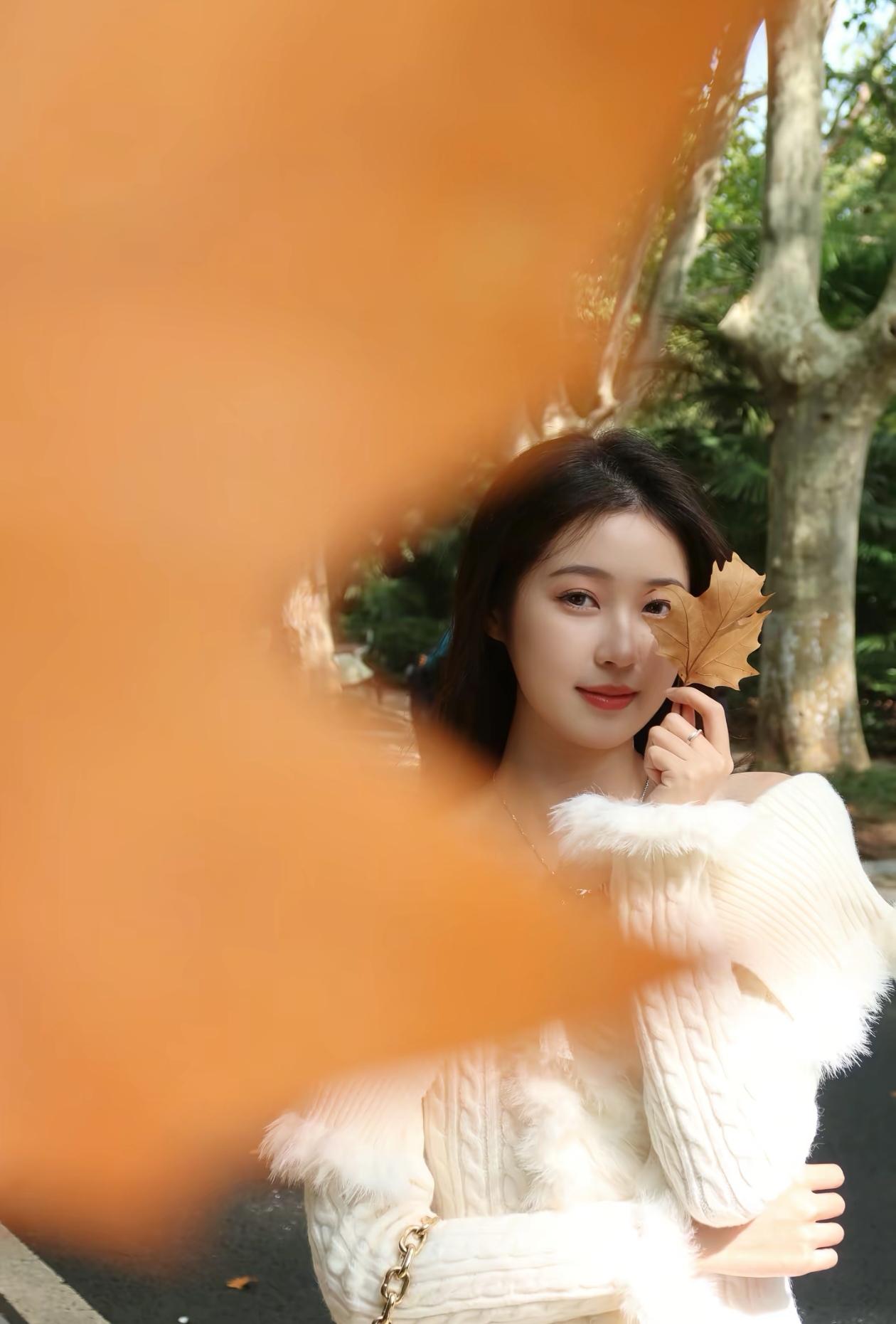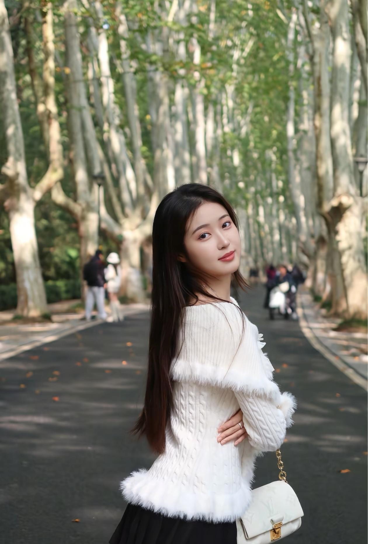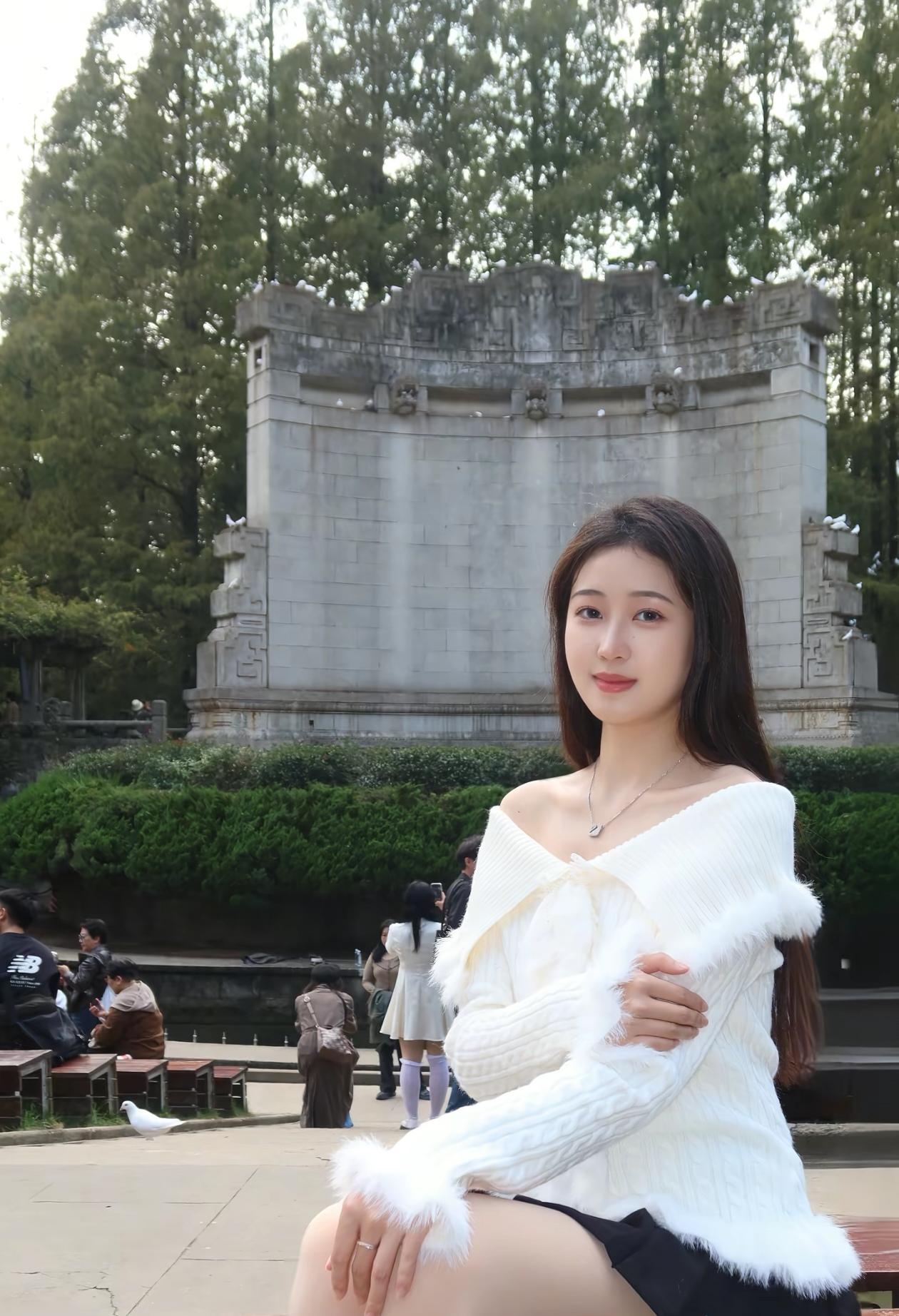 优雅白裙少女,静谧公园时光