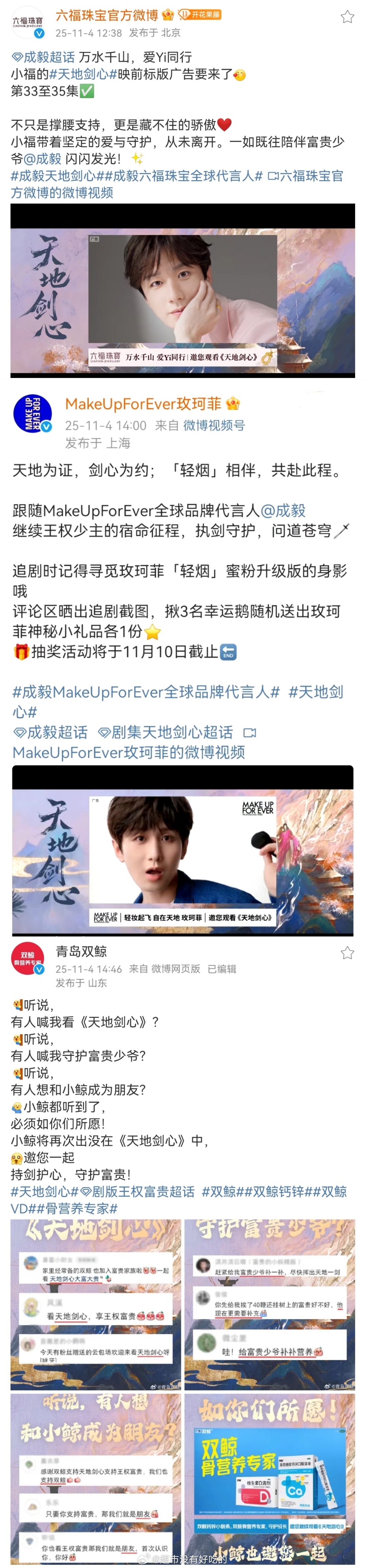 成毅王权富贵继续霸榜横扫全网各大平台热度第一🔥品牌广告商为成毅追投天地剑心!王