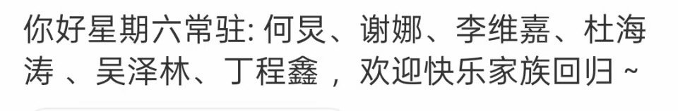 网传快乐家族将回归疑似你好星期六常驻疑似你好星期六常驻,快乐家族将回归,[爱你]