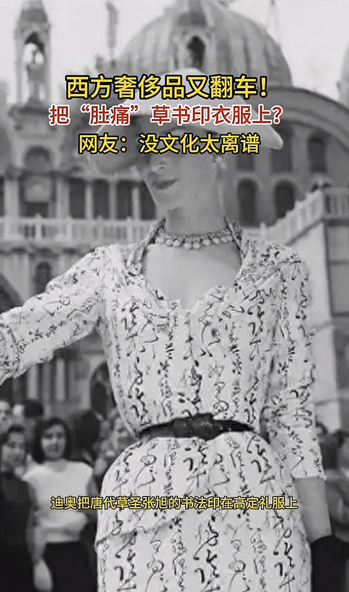 西方奢侈品又闹笑话!迪奥把草圣张旭的书法印在高定裙上,看着龙飞凤舞特高级,结果内