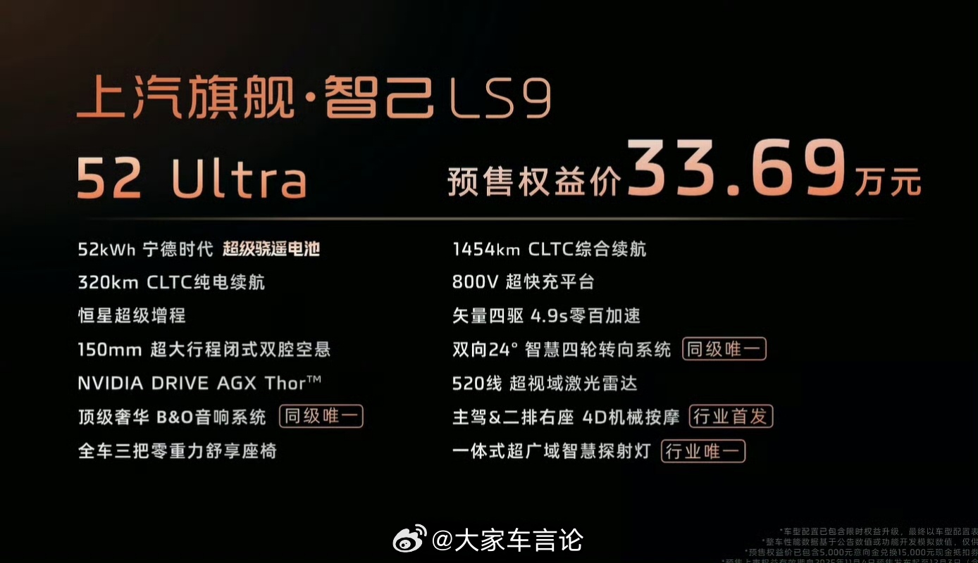 智己LS9预售价公布,优惠后33.69w起,还有购置税兜底。
