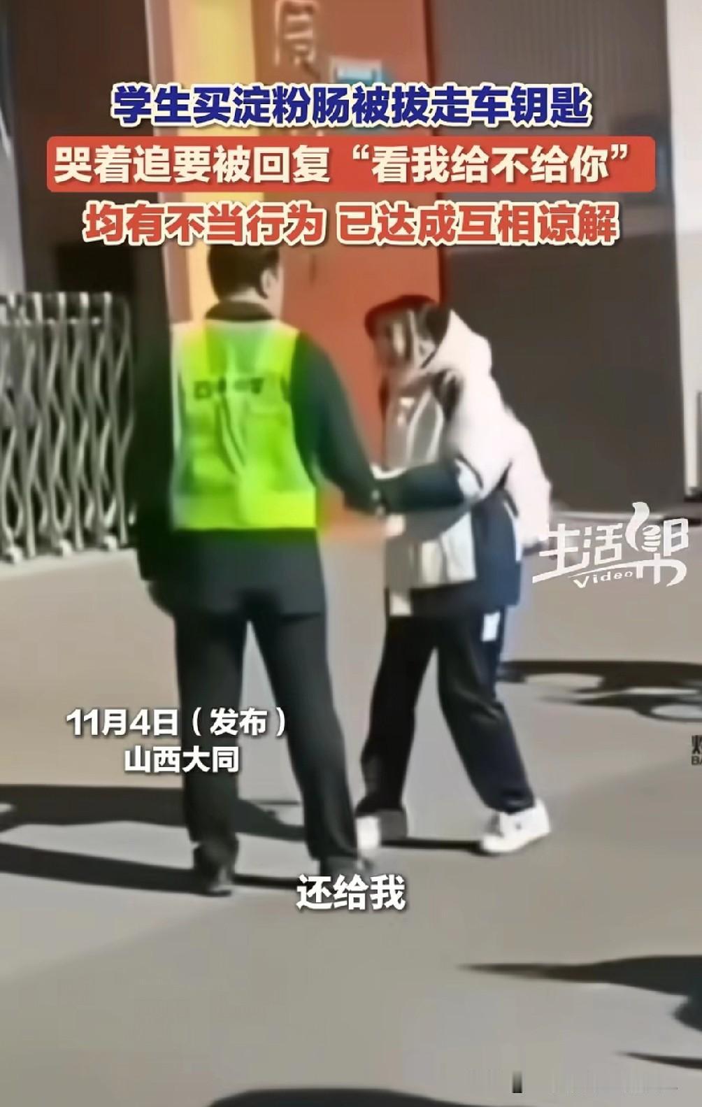 这次山西大同卖淀粉肠的老板, 真的要感谢大同四中副校长了, 这个副校长凭一己之力带动了大同淀粉肠的销量。 女生放学后在校门口买淀粉肠,副校长看到后不问青红皂白直接抢走女生的电瓶车钥匙和家里的钥匙。 女生哀求多次后,副校长就甩下一句,看我给不给你,不知道的人还以为女生犯了天条呢,女生不过是饿了买根淀粉肠就被抢钥匙。 现在越来越多的人带着淀粉肠跑去大同四中校门口打卡,问能不能吃淀粉肠。 这个事情闹的人尽皆知,很多卖淀粉肠的老板看到了商机,上学放学就跑到大同四中门口卖淀粉肠,学生同样很给力,哪怕要排队都要买淀粉肠。 卖淀粉肠的老板,真的要感谢这位副校长,这泼天的富贵,终于轮到自己了。 学校看到事情舆论越来越大,学校给出了解释,会查清买淀粉肠女生的事情,对副校长抢女生的钥匙只字未提。 不过事情经过几天的发酵,学校又开始改口,说当时校门口人太多,女生车子挡住的路,影响交通,副校长劝阻未果才抢走钥匙。 学校这是把大家当傻子糊弄,从视频中看到路上就两人,一个副校长一个被抢走女生,这就叫人流较多,学校这就是典型的,只许州官放火,不许百姓点灯!