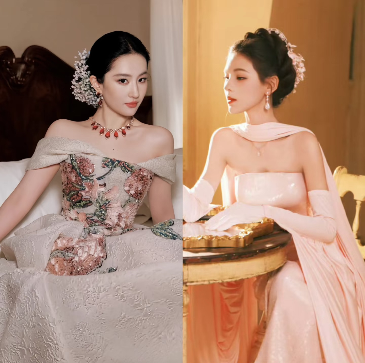 刘亦菲的簪花红毯造型果然爆火!这不,张予曦这次走红毯也跟风簪了同款花呢!完全是两种不同的风格啊!