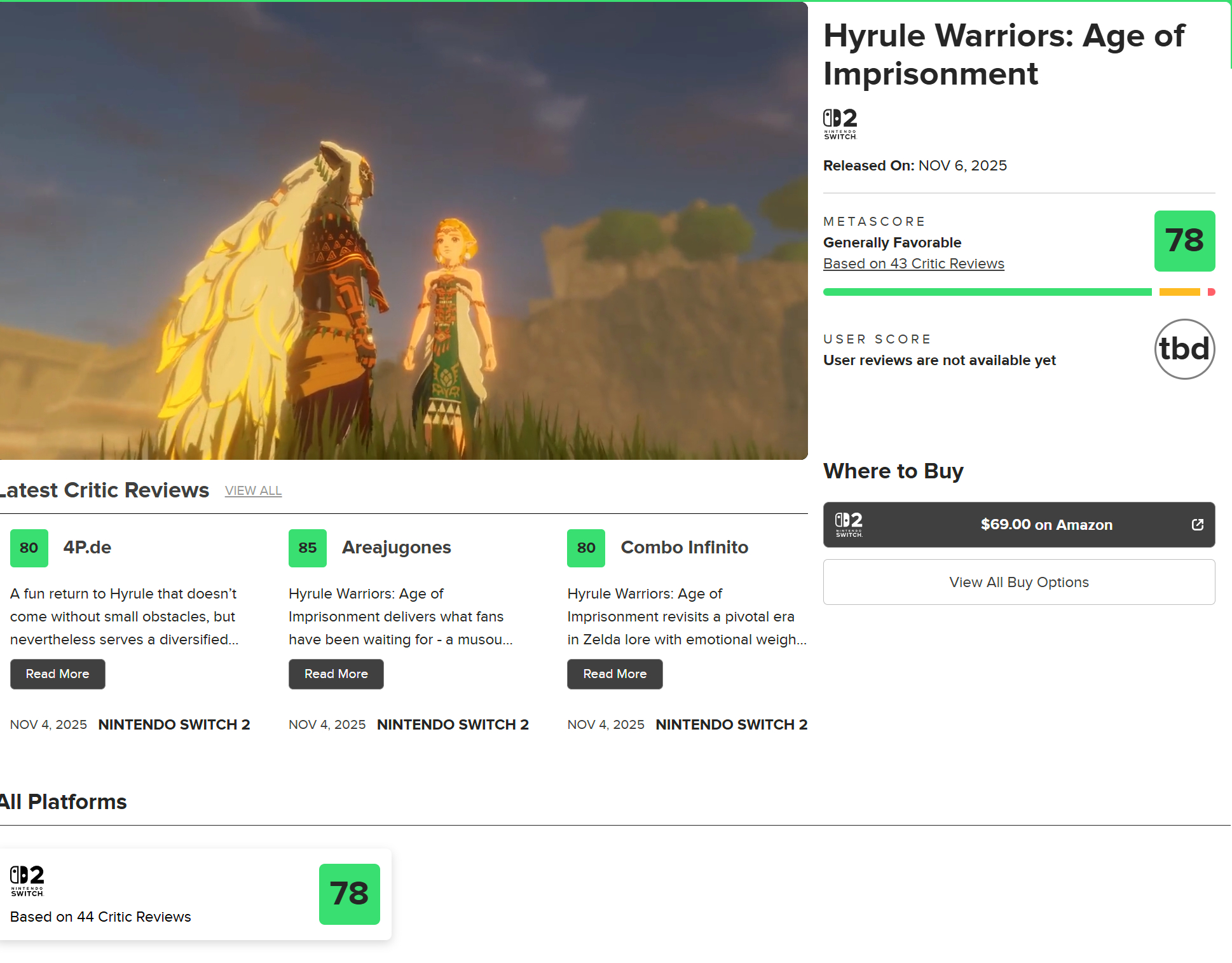 【《塞尔达传说:封印战记》M站评分出炉:78分】