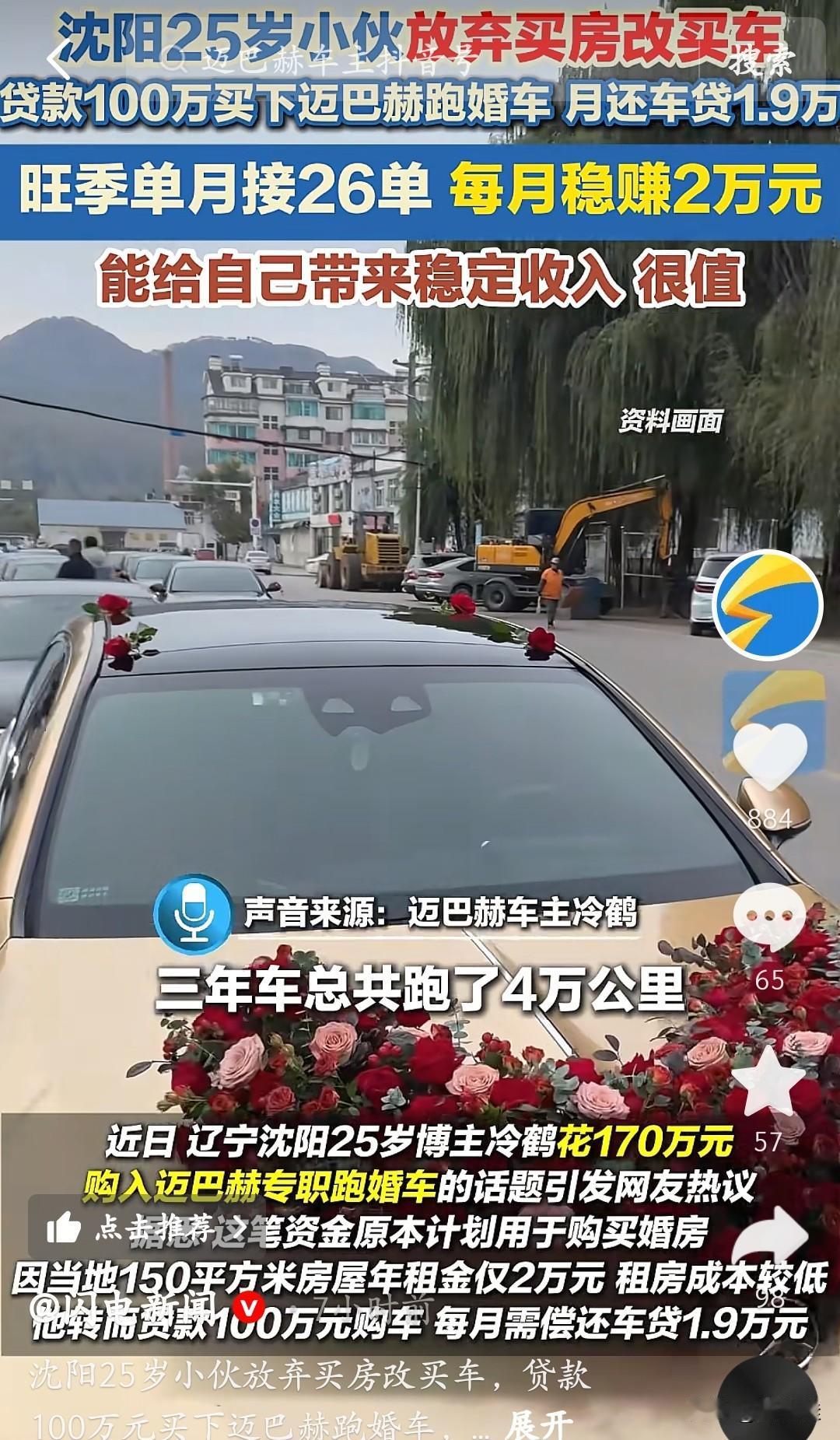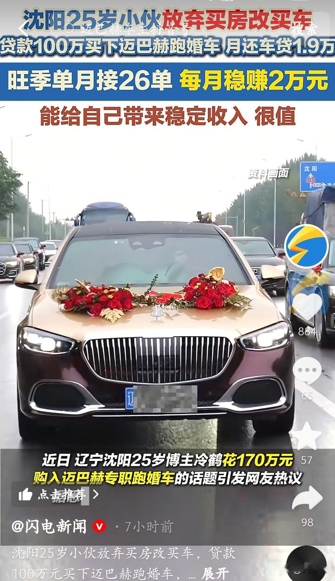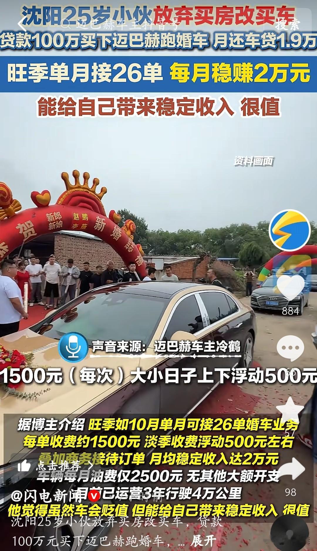 怎么算都划不来啊!沈阳这25岁小伙贷款100万买迈巴赫跑婚车,月还车贷1.9万,虽说旺季单月能接26单,月赚2万,但掐指一算,2万减1.9万,也就只剩1000块。这1000块还要扣油费、车辆保养啥的,几乎所剩无几。而且车还贬值,房子好歹能保值甚至升值。虽说他觉得能带来稳定收入很值,但这账算下来,真是替他捏把汗,这买卖看着热闹,实际细琢磨,也太紧绷了,万一哪天订单少了,这压力可不小啊! 难道是我理解错了?