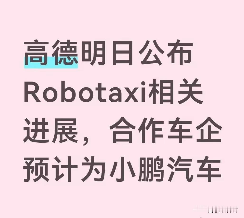 小鹏汽车的无人驾驶出租车要来了!可能高德是合作伙伴! 小鹏最近发展势头不错啊,不仅汽车主体业务重回赛道,新的增长点也没放弃,前几天飞行汽车产线刚刚落地,这不无人驾驶出租也来了! 根据小鹏的海报信息, 在11月5日也就是今天的小鹏科技日上将发布有关Robotaxi的相关信息,据说相关业务高德也参与其中。 百度的萝卜快跑有没有感受到压力?小鹏加高德的组合会带来什么样的无人驾驶出租新技术呢?听听今天何小鹏怎么说?