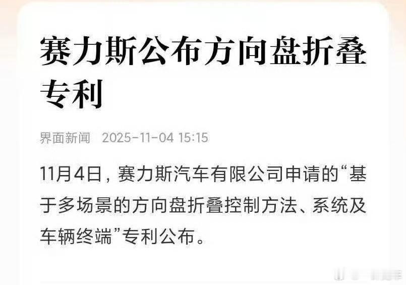 赛力斯公布方向盘折叠专利意料之中,随着智能化的发展,自动驾驶逐渐落地并逐步成熟,