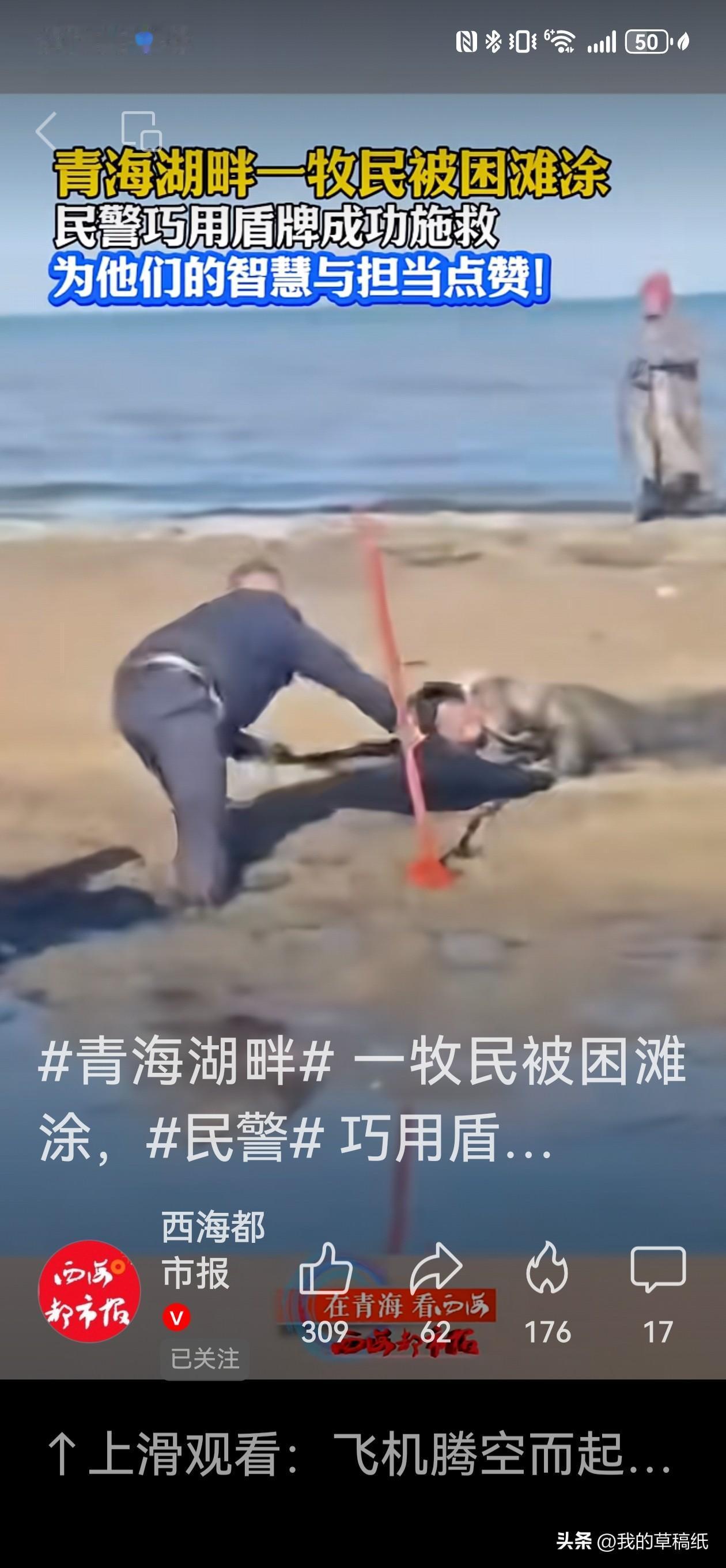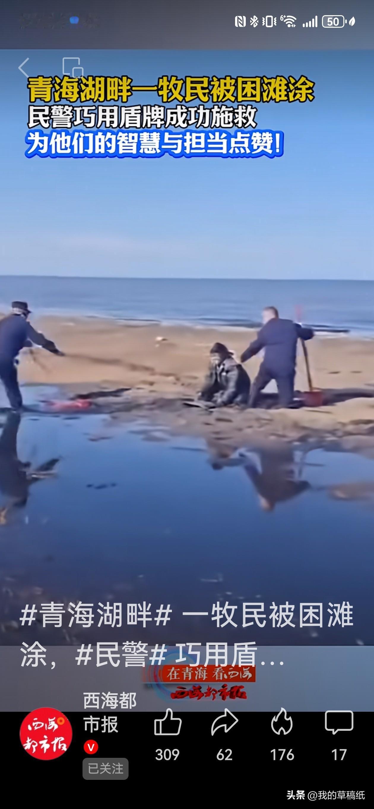 生死营救!青海湖畔牧民淤泥淹没胸口危在旦夕… 深秋的青海湖,寒风如刀。一名牧民深陷泥潭,泥浆迅速淹没至胸口,每一次挣扎都是与死神的博弈。 “别动!相信我们!”黑马河派出所民警罗孝斌与辅警华旦彭措的呼喊划破寂静。他们俯身淤泥,推出防暴盾牌作“生命支点”,一根救生绳系住希望,一场与吸附力的拔河就此展开。 一拉,未动;再拉,泥浆嘶吼。民警的双脚陷在泥中,汗水结成冰霜,却始终不松手。“1、2、3——!”第三次发力,牧民的身体一寸寸脱离泥沼。 30分钟,从接到报警到成功脱险。牧民颤抖站立时,警服已浸透泥水与汗水。“盾牌借力救援法”的背后,是基层民警面对险境的智慧,更是永不放弃的信念。 网友点赞:“这不仅是救援,是真正的生死守护!” 平凡英雄,总是在最绝望的裂缝中,为人间挣来光亮。