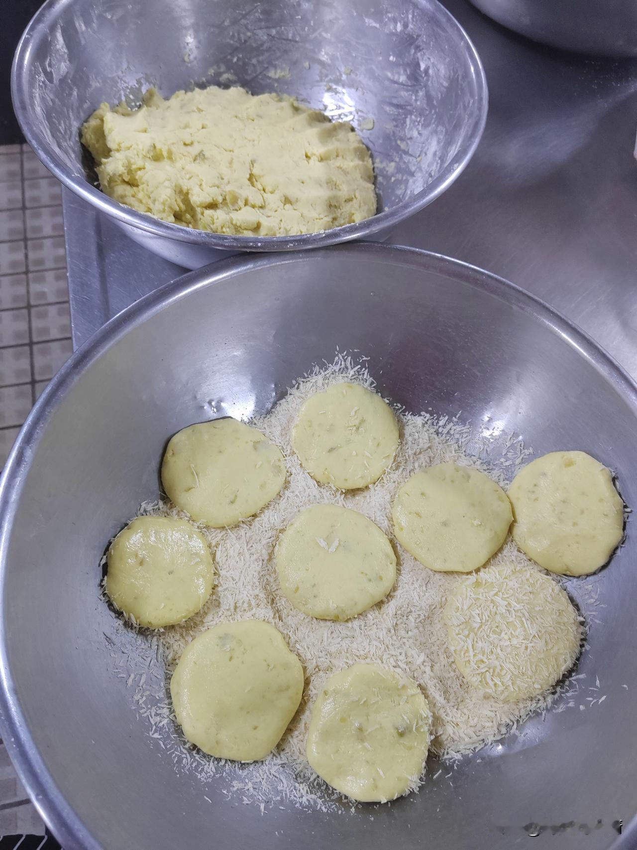 日本上的地瓜也不知道是什么品种,蒸熟了也特别的硬,感觉就是80年代最古老的那种地瓜,切了晒地瓜干的,一点也不好吃,特别特别的硬。 昨天我切了八个,蒸了一个半小时,吃了一天,还剩下了一半多,我寻思着也不能浪费啊,于是就用这个地瓜,给宾仔做点茶点吃。 吃了早饭,我就赶紧把昨天剩下的地瓜从冰箱里取出来,去皮,掰成小块,放在厨师机里面加适量牛奶,把它打成地瓜泥,再加入炼乳,白糖,奶粉,和适量糯米粉,和成地瓜泥,然后再一个一个的团成地瓜丸子,外面粘上一层面包糠,七成热的油温一炸,真是软糯香甜,特别符合喜欢吃甜食的人们,我不说是地瓜做的,他们真的不知道。 看来简单的原料还需要精细的去做,才能能好吃啊!