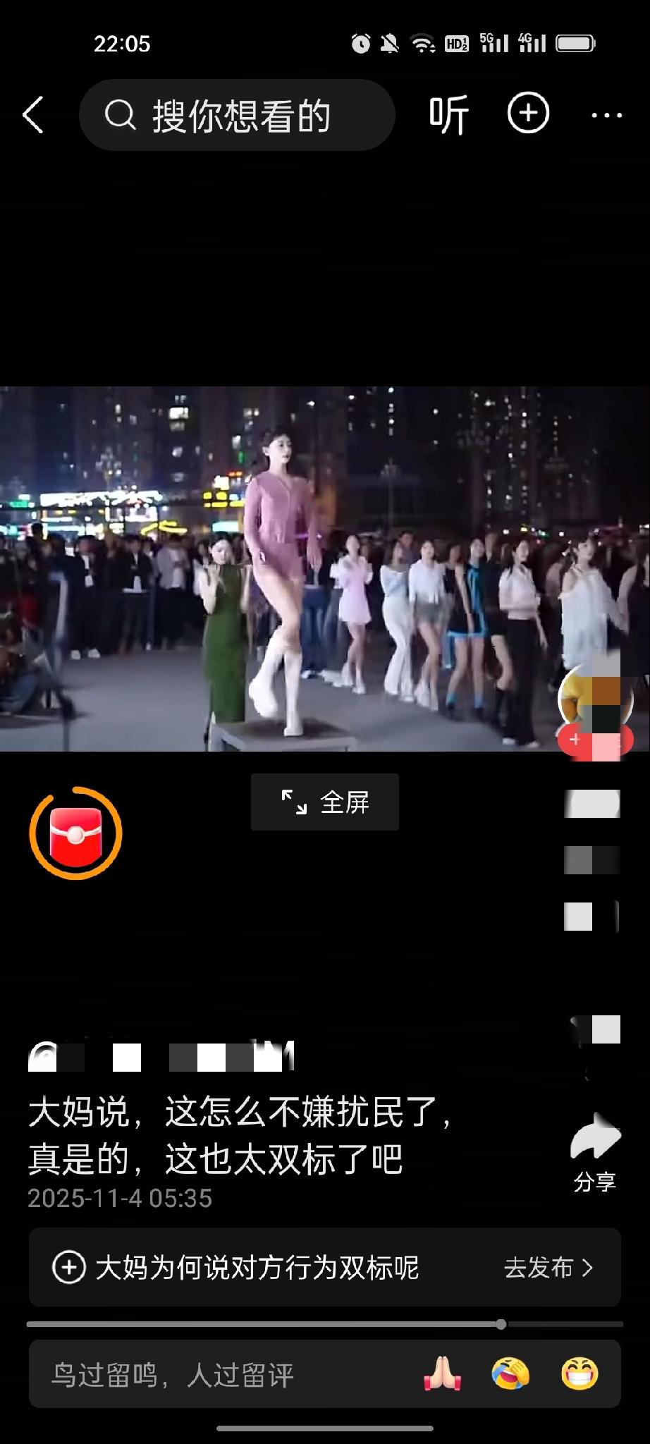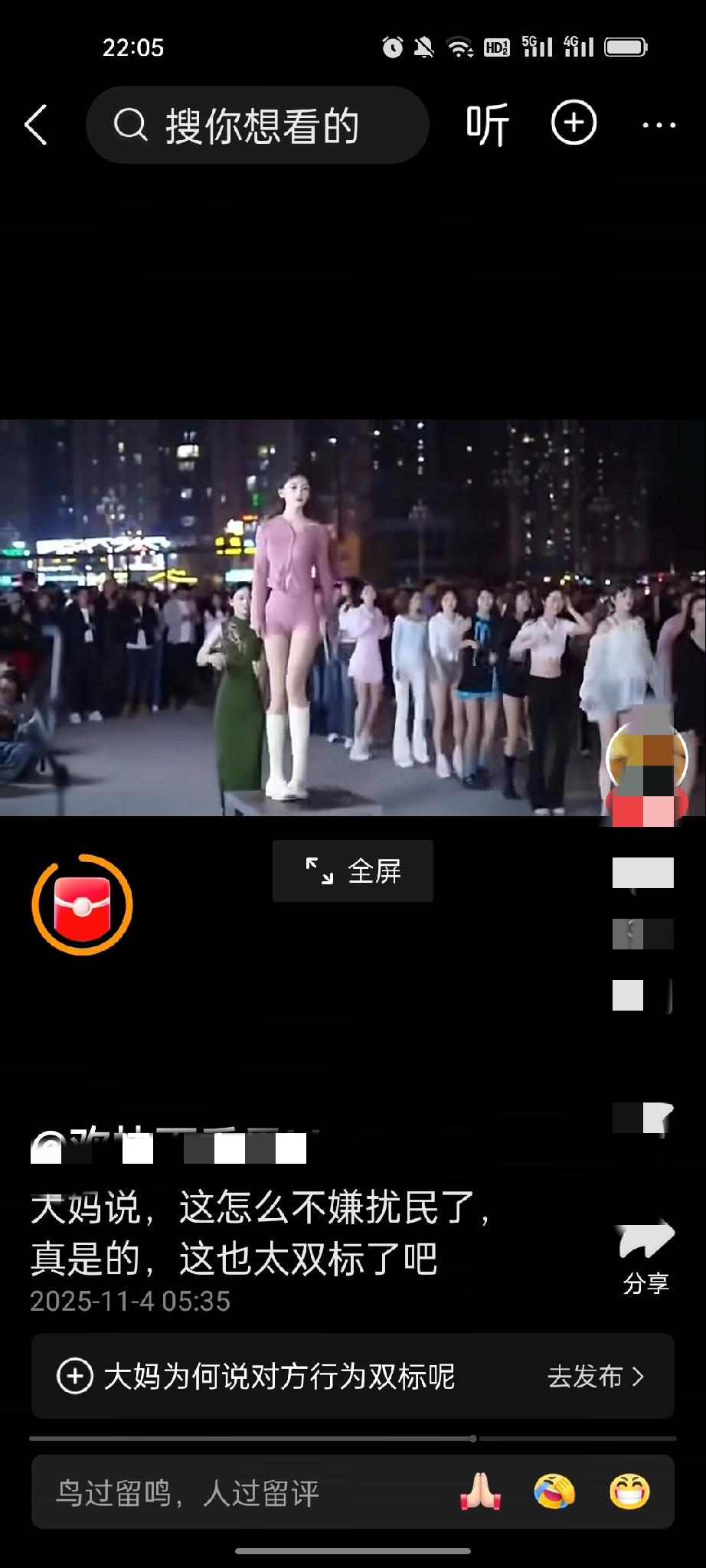 他们是真的嫌广场舞扰民吗? 在城市一处休闲广场上,有一帮妙龄女郎在跳广场舞,个个都是身材姚窕,青春靓丽。尤其是领舞人,站在一个凳子上,秀起了翩翩舞姿。 观众们是围了里三层外三层,大伙儿边看边掏出手机拍摄,记录这一美好时刻。 感觉不对呀,大伙儿不是最烦广场舞扰民吗?这下是不是暴露真相了,他们不是烦广场舞,只是烦大妈们的广场舞[呲牙][呲牙][呲牙]