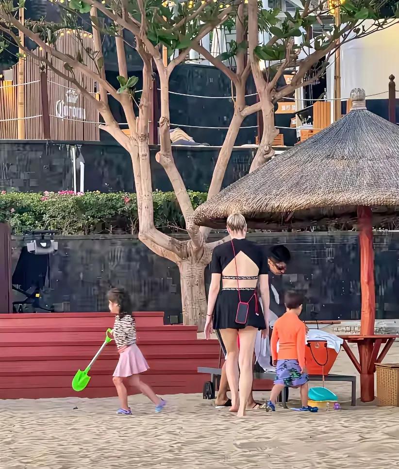 撒贝宁一家四口在海边游玩,在沙滩上,撒贝宁的老婆身材高大挺拔,但也感觉亭亭玉立,撒贝宁在其面前个头显得有些小了,不过撒贝宁可是才艺双全的才子,所以中国有句俗话“才子配佳人”,最贴切不过了!