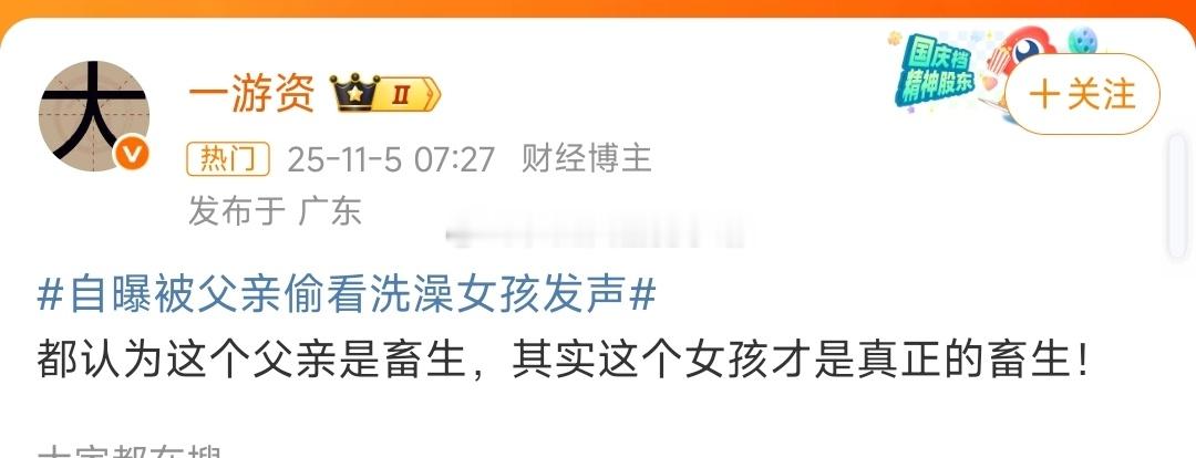 自曝被父亲偷看洗澡女孩发声他们真的很团结诶。