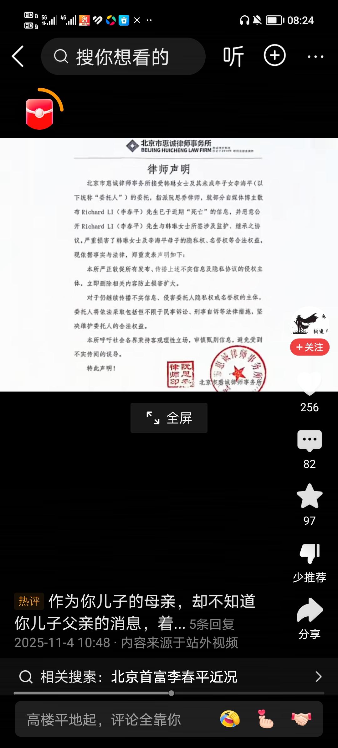 又有中国慈善家李春平的消息, 在网上看到一个女子讲到李春平,感到很吃惊,她说委托了律师,在视频里还真的看到了律师声明,真的委托了律师介入。 李春平中国慈善家,很神秘, 儿子的母亲也不知道儿子父亲的消息, 谁知道李春平先生的具体情况那?
