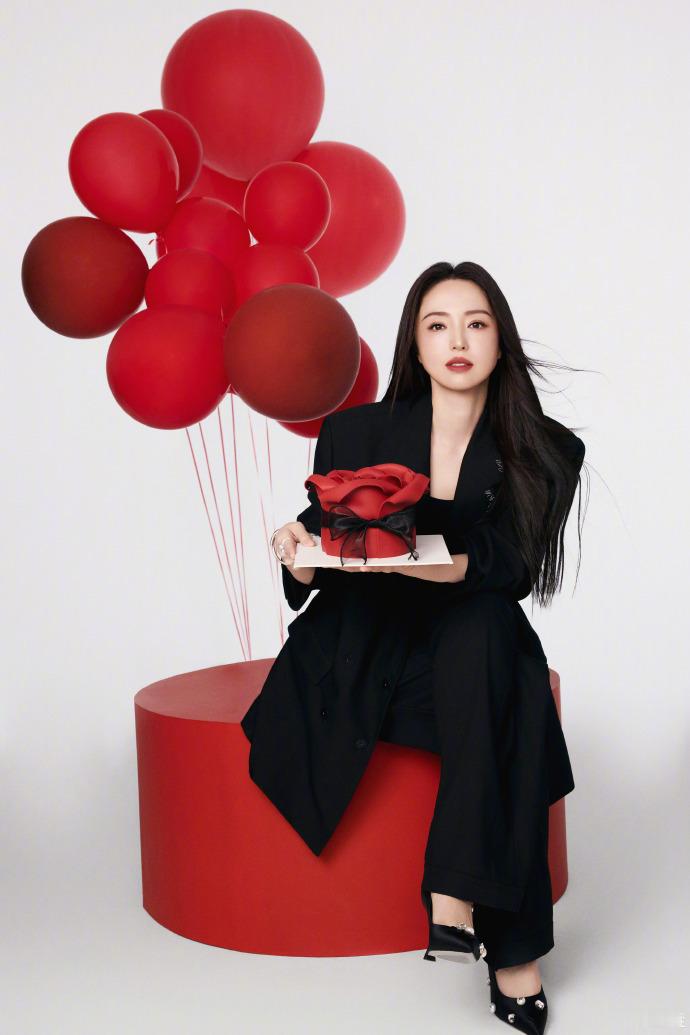 董璇红与黑生日大片 董璇红与黑生日大片来啦~手捧红气球和玫瑰蛋糕的姐,感觉香香软软的!生日快乐~一定要幸福呀