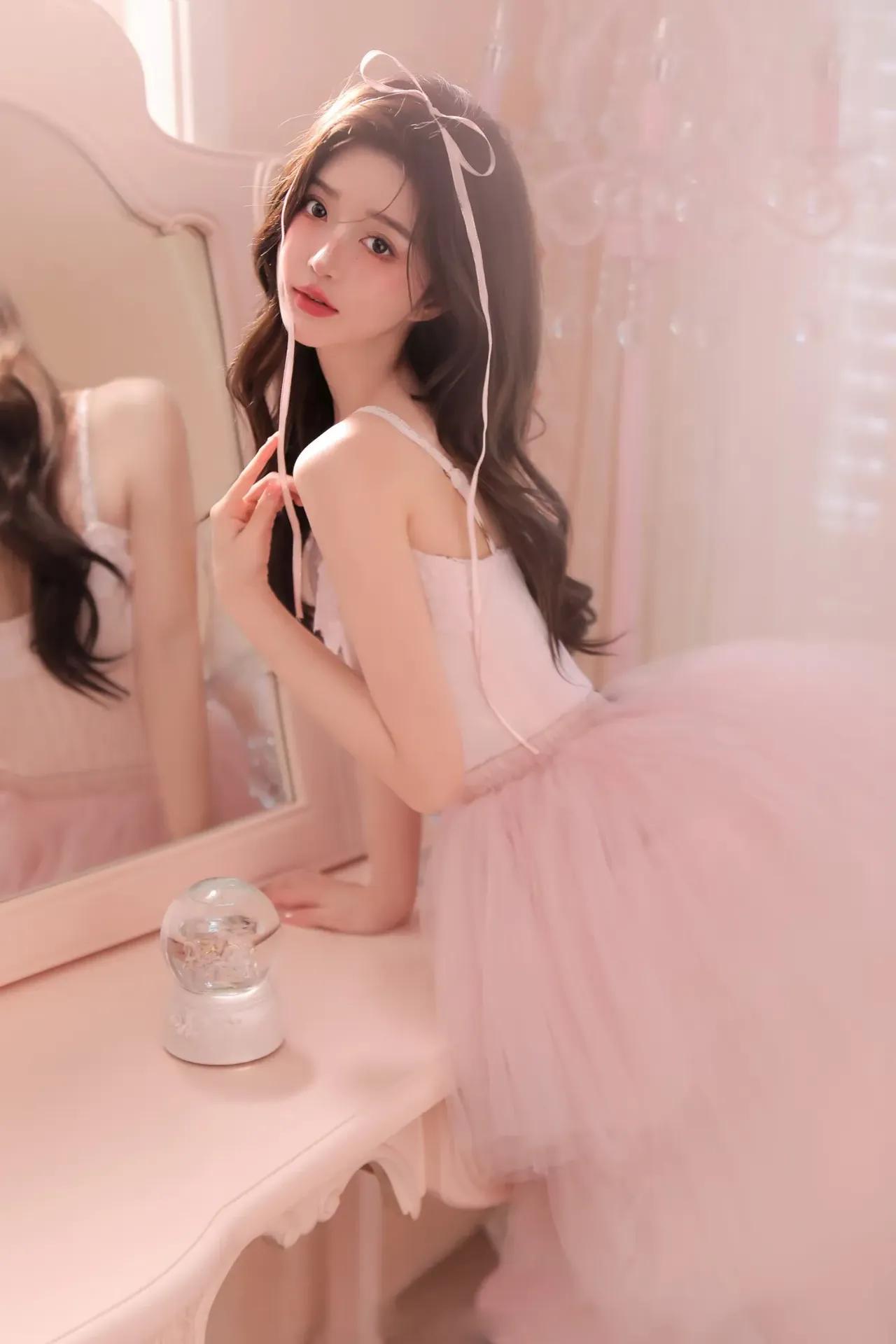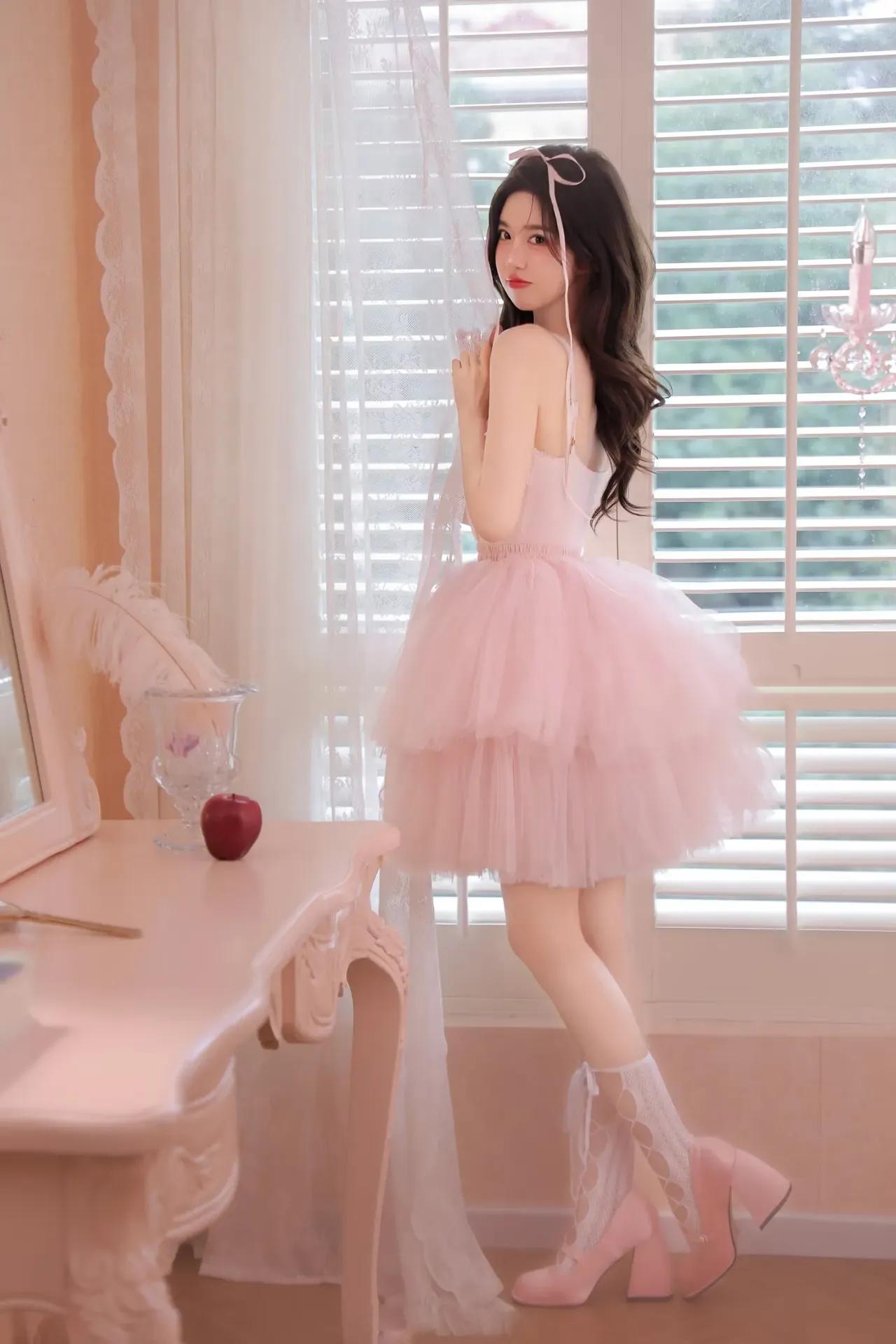梦幻少女心,粉色薄纱裙,温柔氛围,甜美可爱。