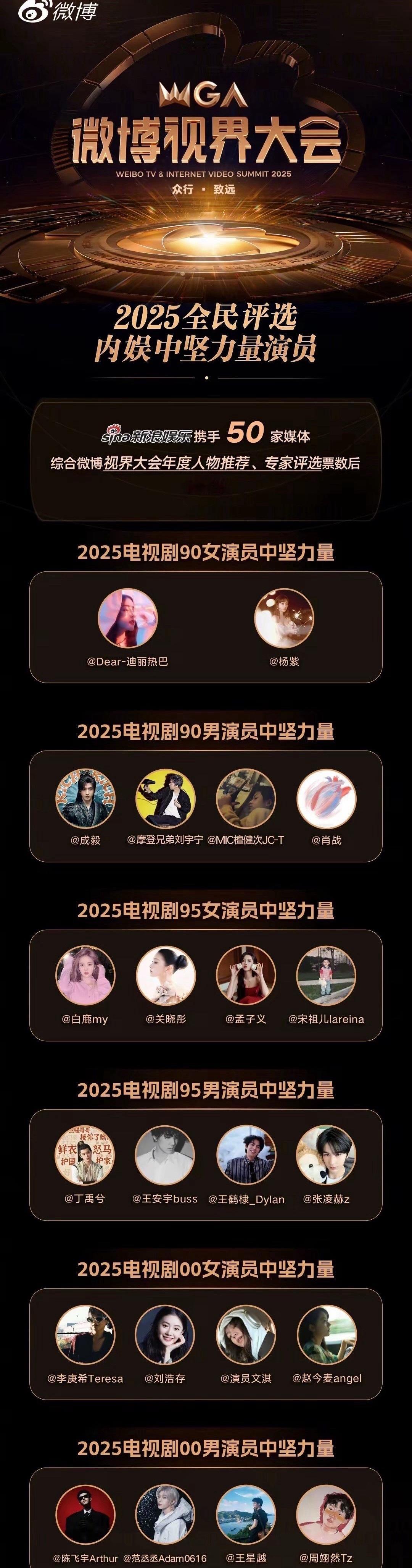 微博视界大会中坚力量演员投票前后对比粉丝投票VS最终结果差的挺多的投到最前面微