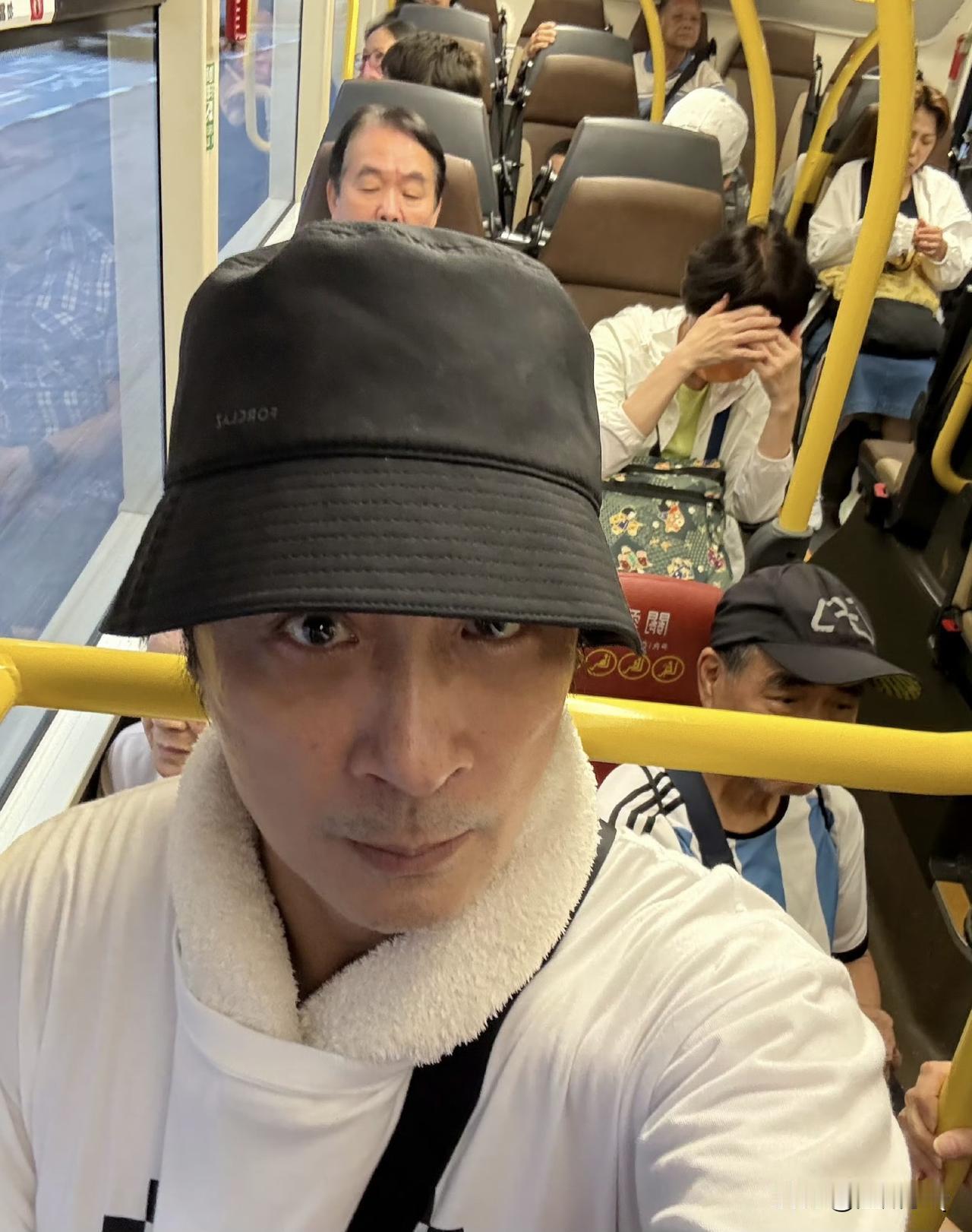 吴镇宇都已经到了免费坐公交的年龄,但你看看他身后的大爷大妈们,完全不是在一个年龄层次的,难怪司机都要吴镇宇出示身份证来证明年龄。