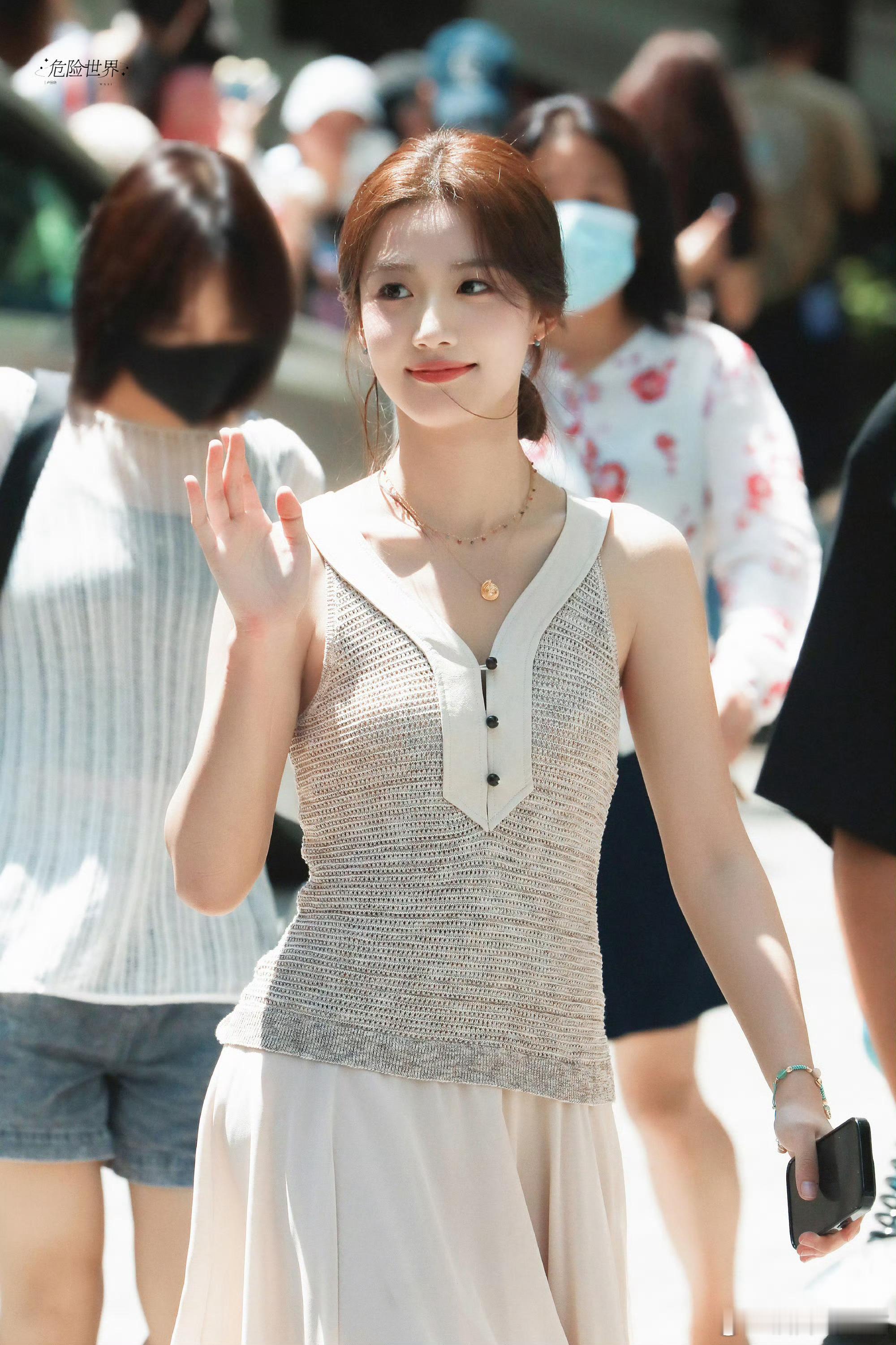 张天爱跟素人合影,胯真的好宽,大宅院似的