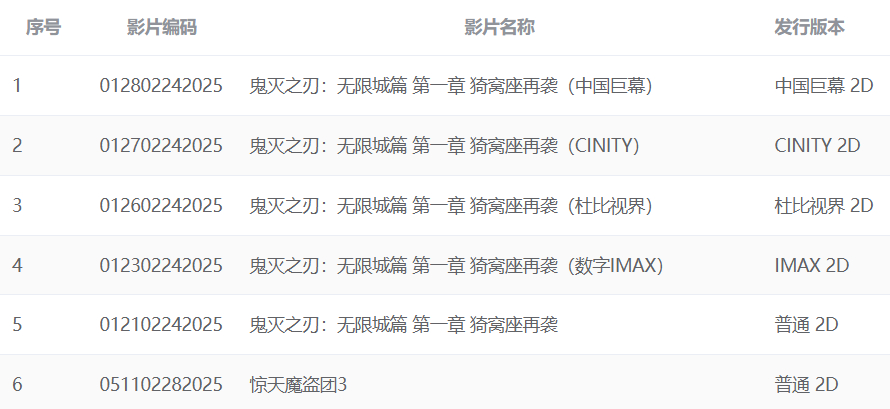 鬼灭之刃无限城篇 排次号已上线专资,时长155分钟与原版一致,预售即将开启。