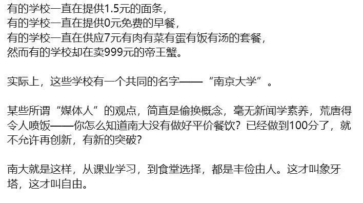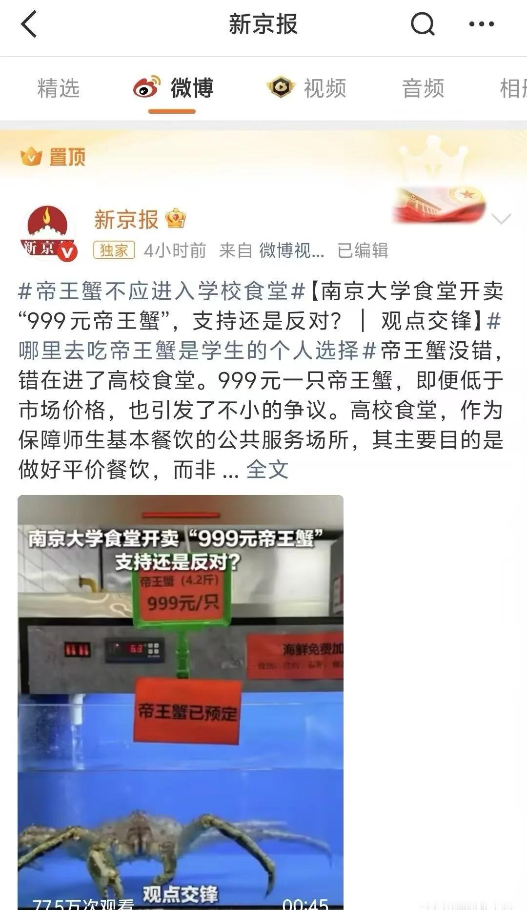 还没有,但是看着新京报被校友们骂 高分学生不应进入学校【南京大学开设680+分数线,支持还是反对?| 观点交锋】读什么大学是学生的个人选择 考高分没错,错在进了南大。680分的高考分数,即便低于清北分数线,也引发了不小的争议。高校,作为保障师生学习工作的公共服务场所,其主要目的是做好教学科研工作,而非鼓励学生追逐高分数线。南大学生一次高考的分数已经超过了一般大专生两次的高考分数。 高分数线,本就不是高校“主菜”,没必要用本就不足的公共资源服务小众需求,高校作为育人场所,让更多学生考上南大,才是努力的方向,这同时也引导学生树立理性成绩观念。680+的分数线,还是不应该出现在高校招生的菜单上。 参考文献帝王蟹不应进入学校食堂南京大学 便宜南京大学称999元帝王蟹比市场价