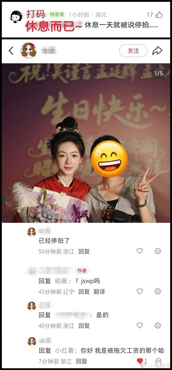 《江山为聘》剧组被传停拍,但也有说只是休息一天