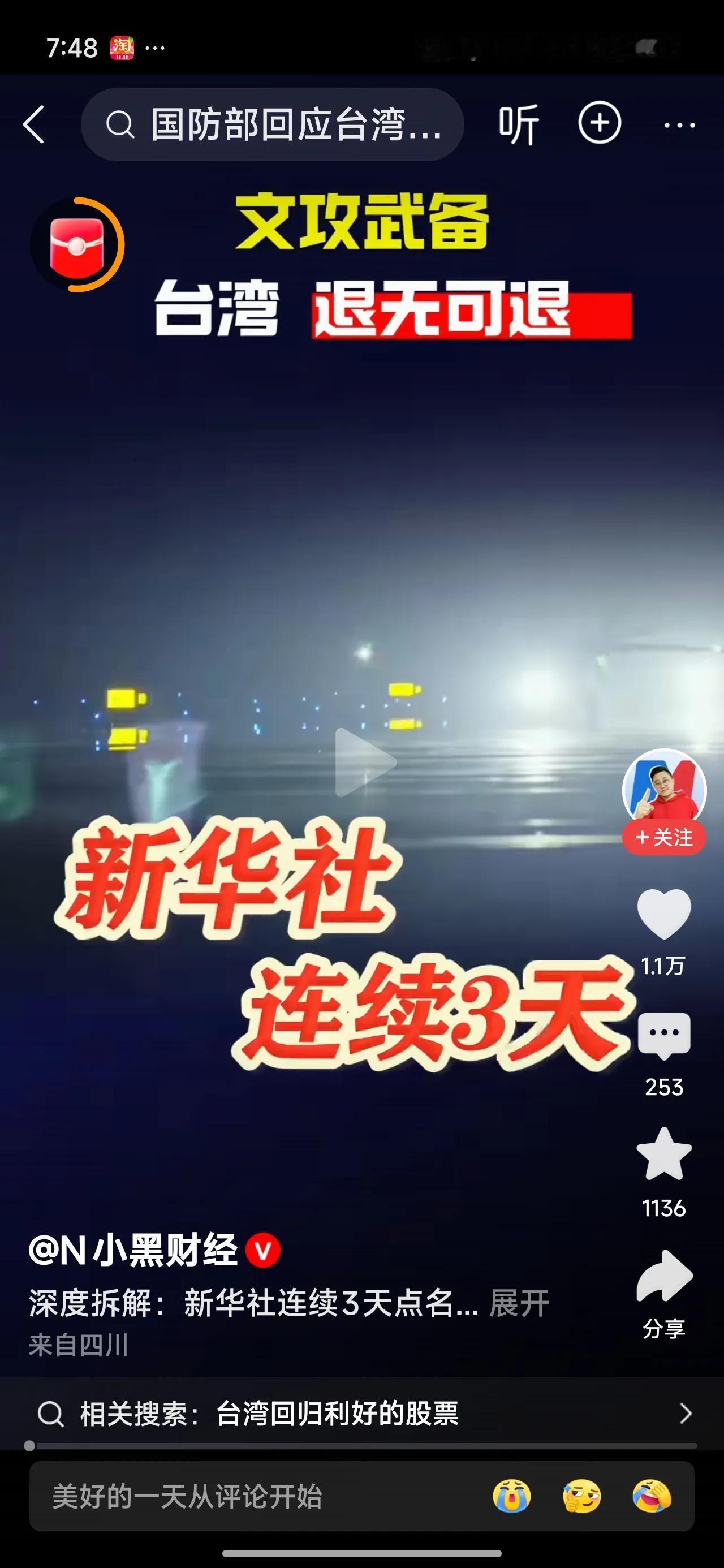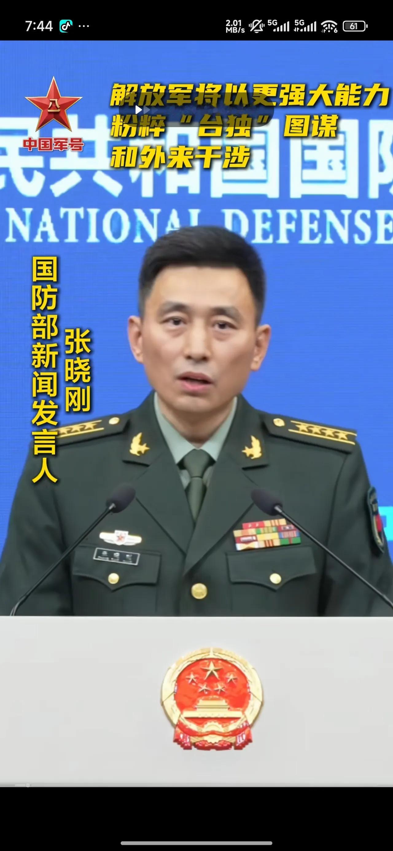 这是要准备收复台湾了吗? 真希望一觉醒来,收到一条快讯,赖清德等台独分子已经被控制,解放军接管台湾! 也许哪天一觉醒来,已经统一啦!