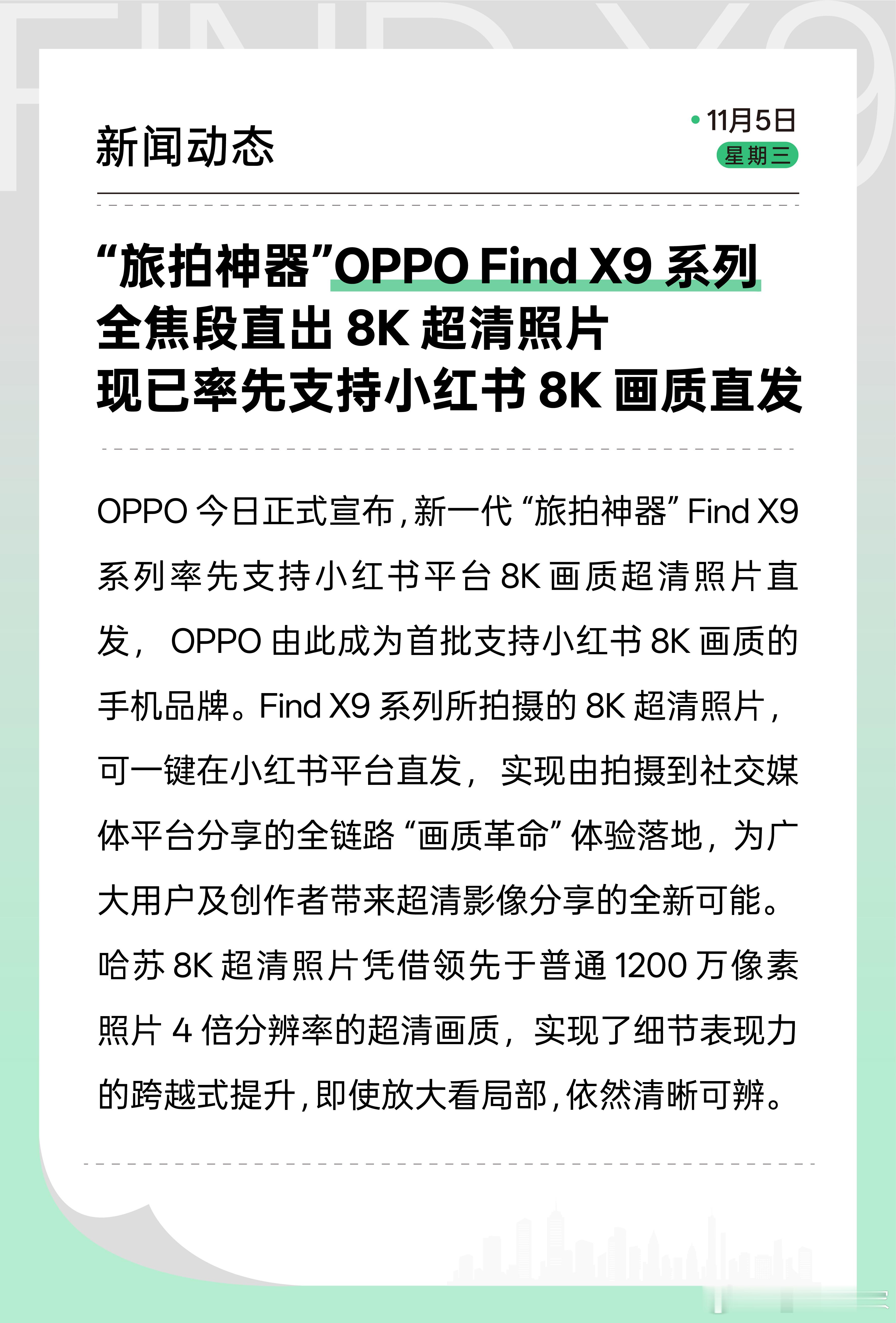 OPPO Find X9 系列率先支持小红书平台 8K 画质超清照片直发。拍的多清晰,平台上看的就有多清晰[打call]