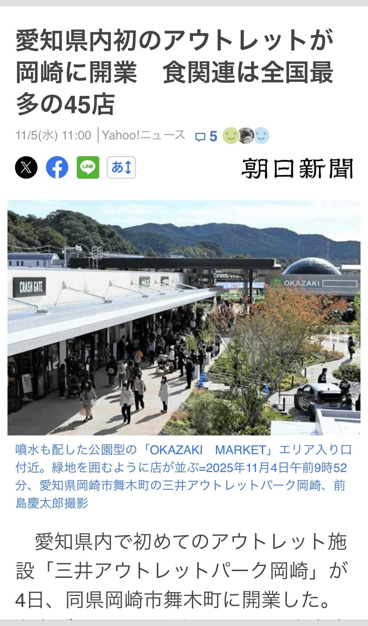 爱知县首家奥特莱斯购物中心——三井奥特莱斯公园冈崎店,4日在爱知县冈崎市舞喜町盛大开业。 购物中心汇集了180家店铺,涵盖了众多知名品牌和当地知名的商店。 据三井不动产介绍,该店是所有奥特莱斯中唯一一家能够以折扣价购买品牌商品的,仅食品类店铺就多达45家,位居全国之首。