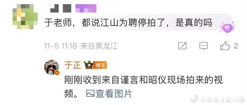 更新:于正辟谣,说吴谨言发了拍戏的视频。