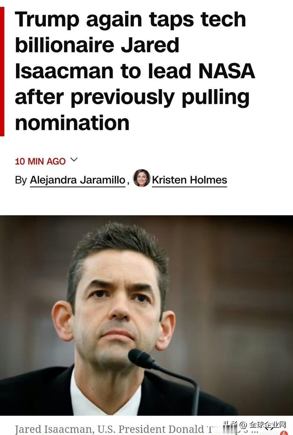 图1:马斯克的亲密助手又被特朗普提名为NASA局长了!² 还是亿万富翁贾里德·伊萨克曼(Jared Isaacman)。上次特朗普-马斯克闹翻后,特朗普取消提名他,理由是他给民主党捐过钱。现在又提名他了。热点科普