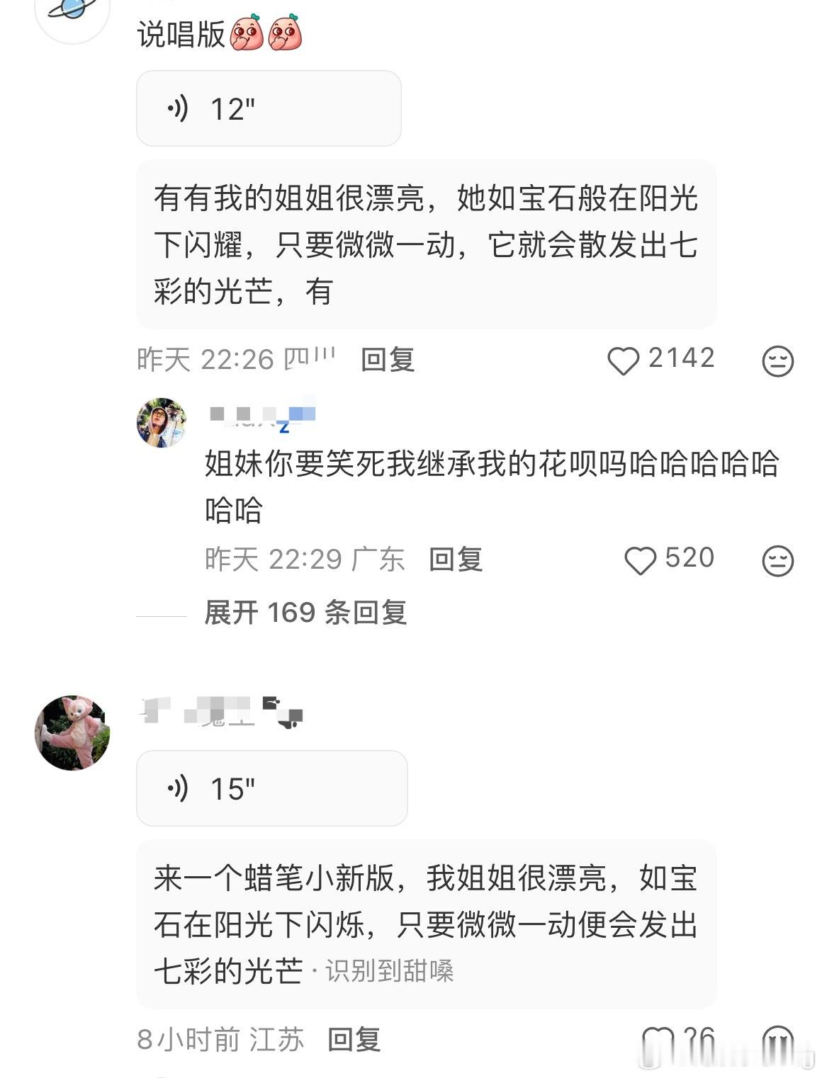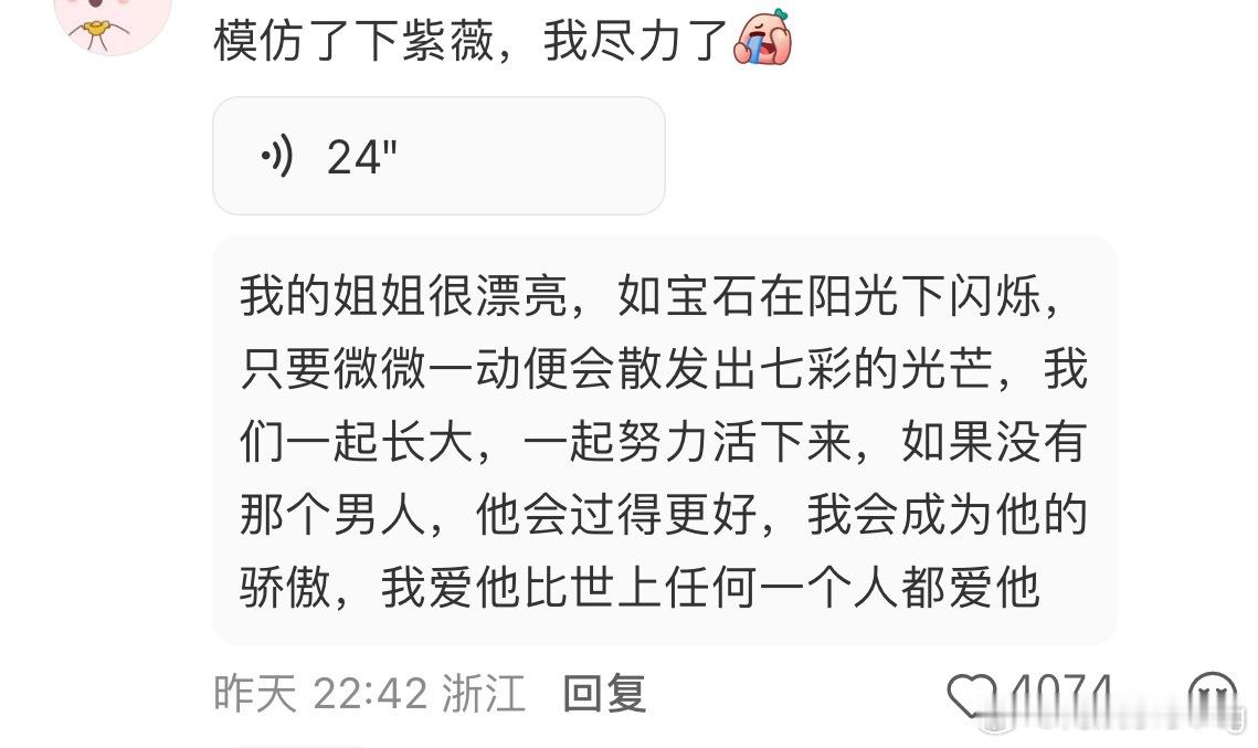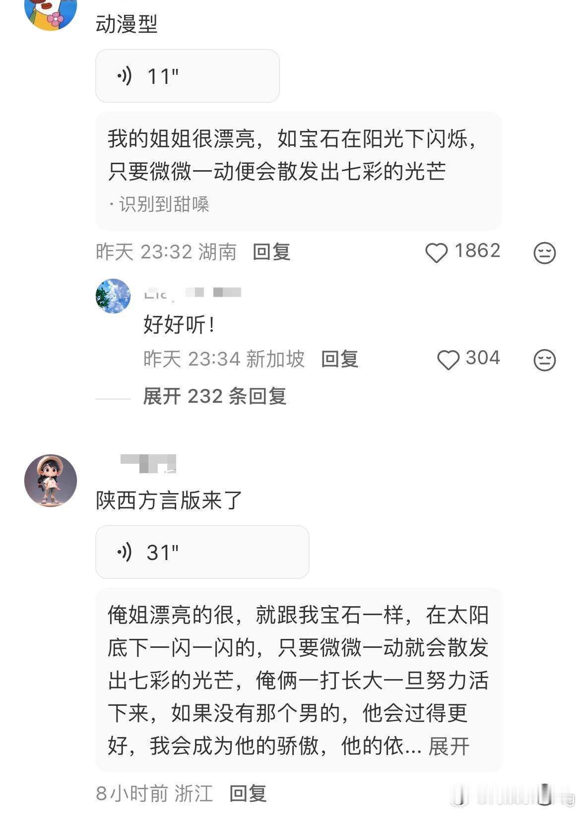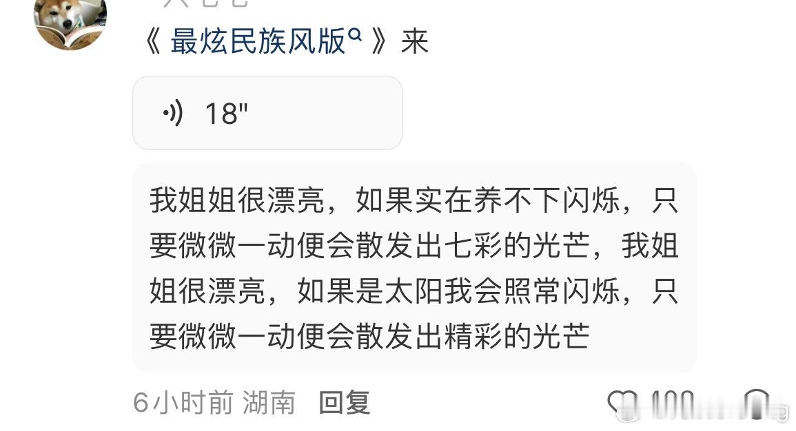 打开红薯各种版本的模仿弘毅“我的姐姐很漂亮…如宝石在阳光下闪烁…”的语音[笑cry]