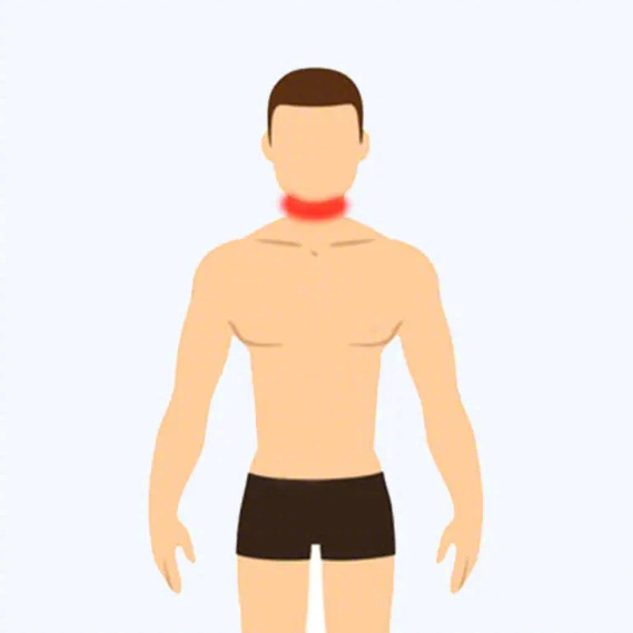 ①颈部、嗓子痛