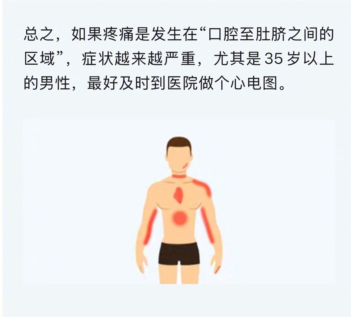 硬核研究所【身体5个部位疼要警惕心梗】每年冬天,都是心梗的高发期。除非发生心脏骤停,大部分心梗并不像电视剧里演得那样,发病后立刻昏倒。现实中的心梗,最典型的症状是「胸痛伴大汗」,这种疼痛常从胸骨后或心前区开始,范围有一个巴掌大小,超过15分钟甚至数小时不缓解。疼痛常被描述为绞痛、压榨痛、紧缩感,像胸口放了块大石头、或用胶带缠了几圈。