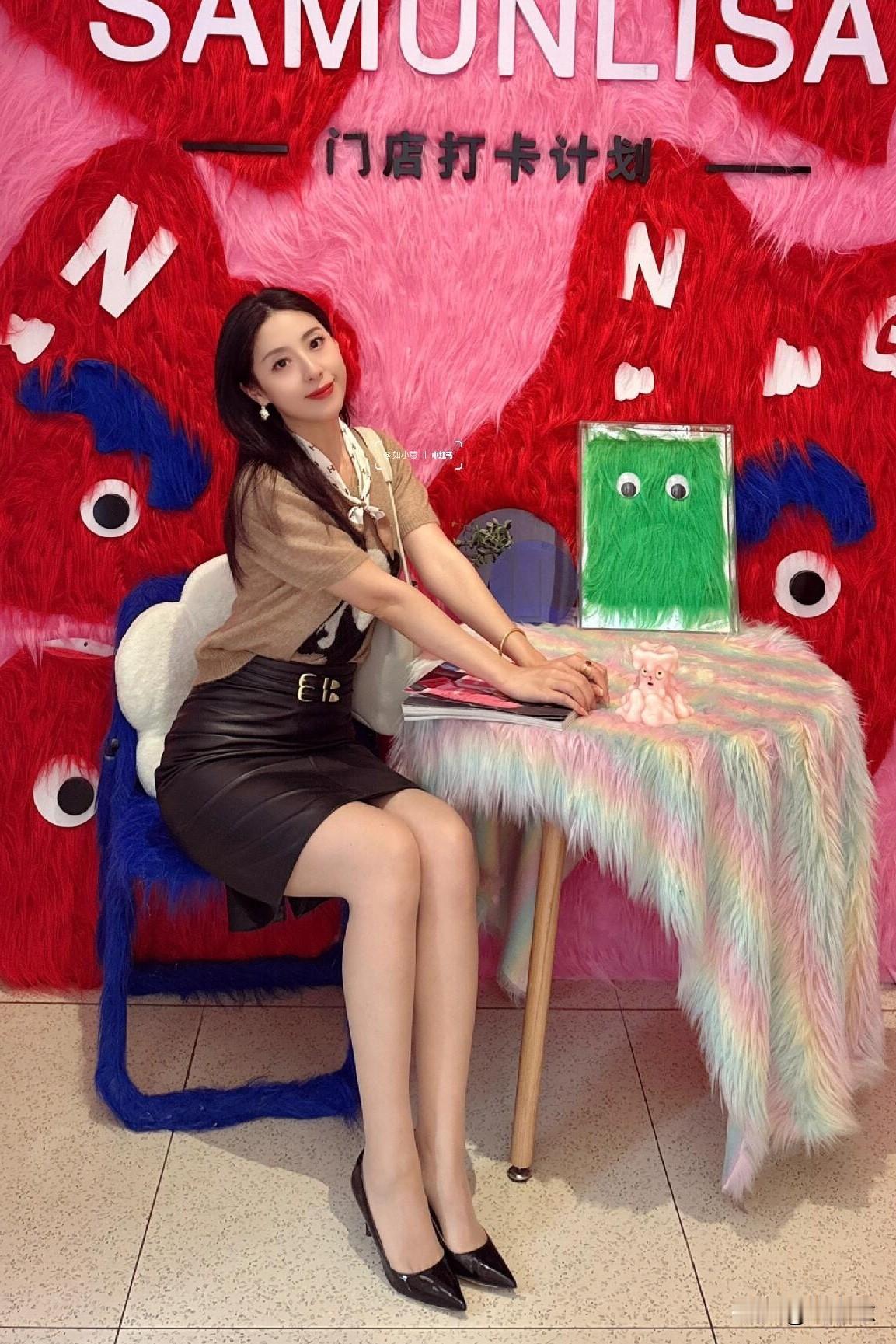 电梯里的高圆圆,长裙搭配蕾丝黑丝袜,优雅时尚!