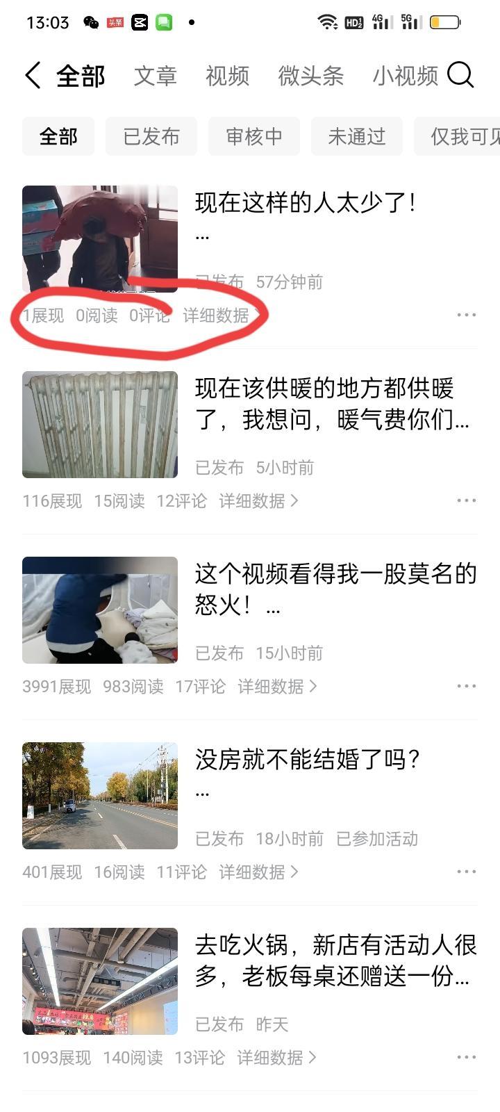 忍不住了!也想来吐槽一下,这两天刷到太多条友说最近展现量阅读量都很差,深有同感。今天发布一篇,一个小时了,1展现,0阅读,我也想问问到底是怎么了? 之前有看过条友分享,说两个小时内展现量个位数十位数就是被限流了,把作品删除吧,我想问下大家,你们是怎么办的?删除,还是改写重新发? 这篇文没有什么敏感话题敏感词,写的也是知恩图报的正能量事件啊,既然通过了说明它没什么问题,那为什么会被限流呢