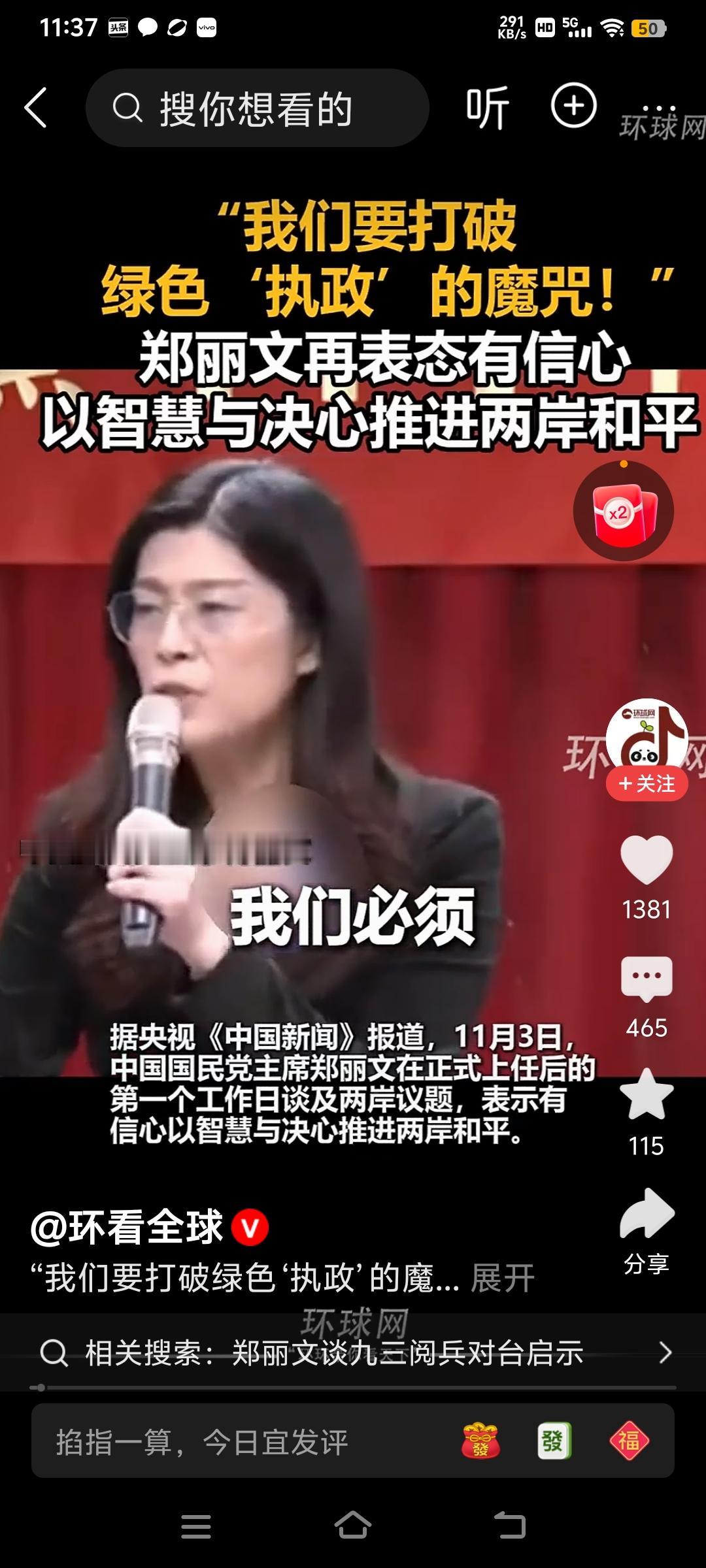 郑丽文再表态:有信心推进两岸和平,但就是不提祖国统一,充分说明她就是马英九的衣钵传人! 连战、马英九之流,口里含坚持九二共识和两岸和平,实际上就是把大陆当傻子,一边捞取大陆惠台好处,一边坚持以拖待变,反正就是不进行祖国统一的实际步骤。 连战、马英九、郑丽文之流这种暗独行为,从祖国统一的大业来说,比赖清德之流明独的危害更大,更具欺骗性,使祖国统一的时间更加漫长。 两岸分离都快一个世纪了,祖国统一的问题不能再拖了。国家不应该再理会台湾这党那党的吵吵闹闹了,而是要采取实际措施推进祖国统一大业。如果还按郑丽文之流的意愿拖下去,世界上其他国家怎么看我们?!