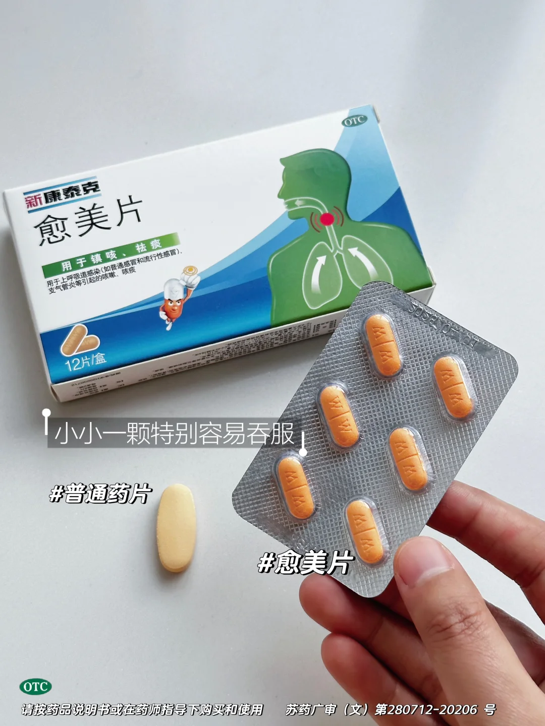 👉这时得用愈美片!它里面的右美沙芬成分,它属于中枢性镇咳药,可以直接作用于大脑中枢抑制咳嗽反射[赞R][赞R]我上次流感后干咳就是靠它救回来的~关键它小小一粒!特别容易吞服!