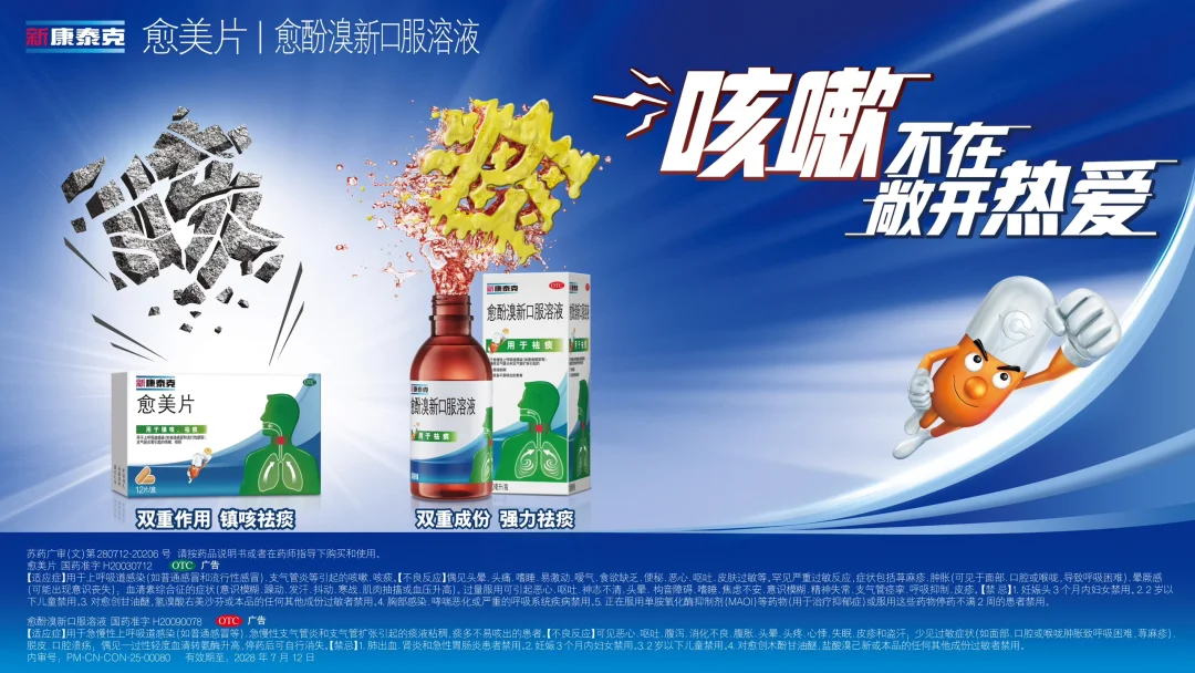 👉这时候就得用新康泰克愈酚溴新口服溶液!