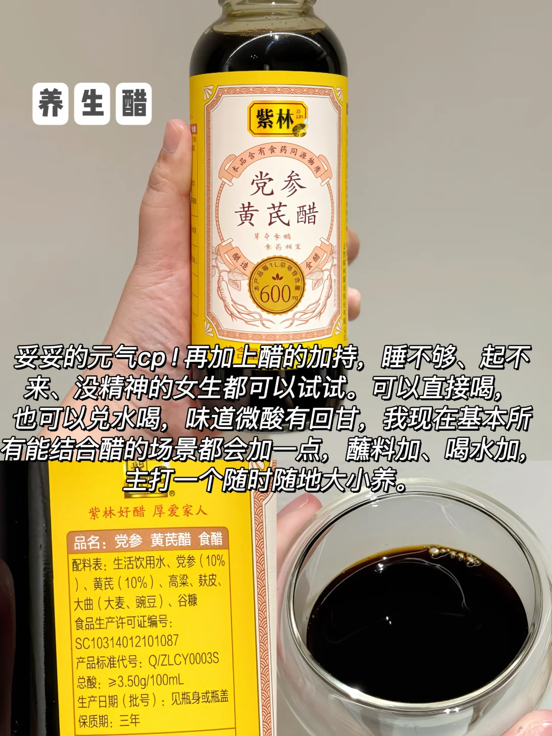 妥妥的元气cp ! 再加上醋的加持,睡不够、起不来、没精神的女生都可以试试。可以直接喝,也可以兑水喝,味道微酸有回甘,我现在基本所有能结合醋的场景都会加一点,蘸料加、喝水加,主打一个随时随地大小养。