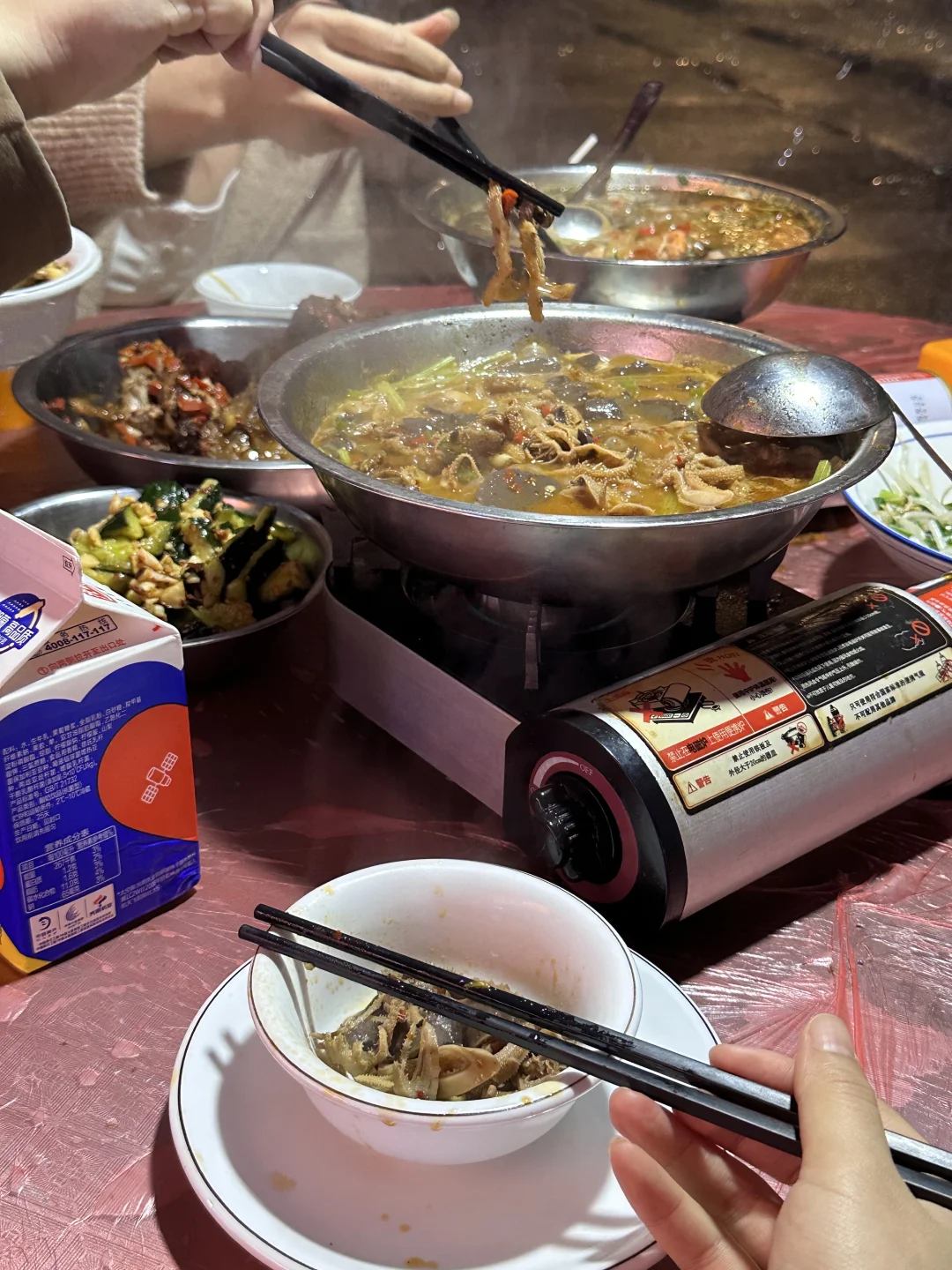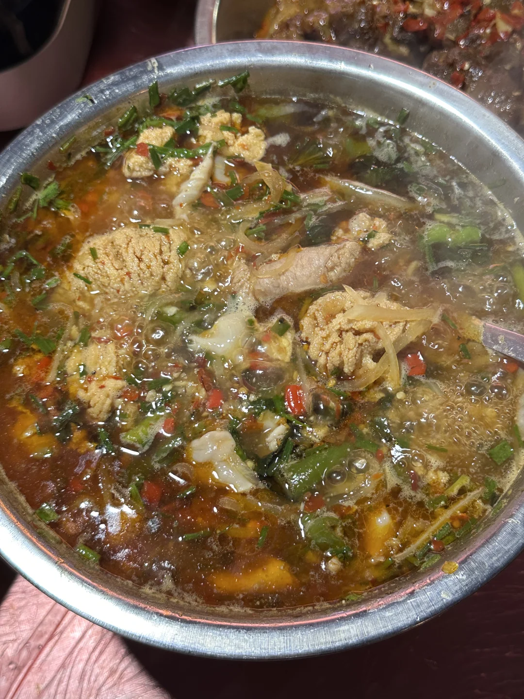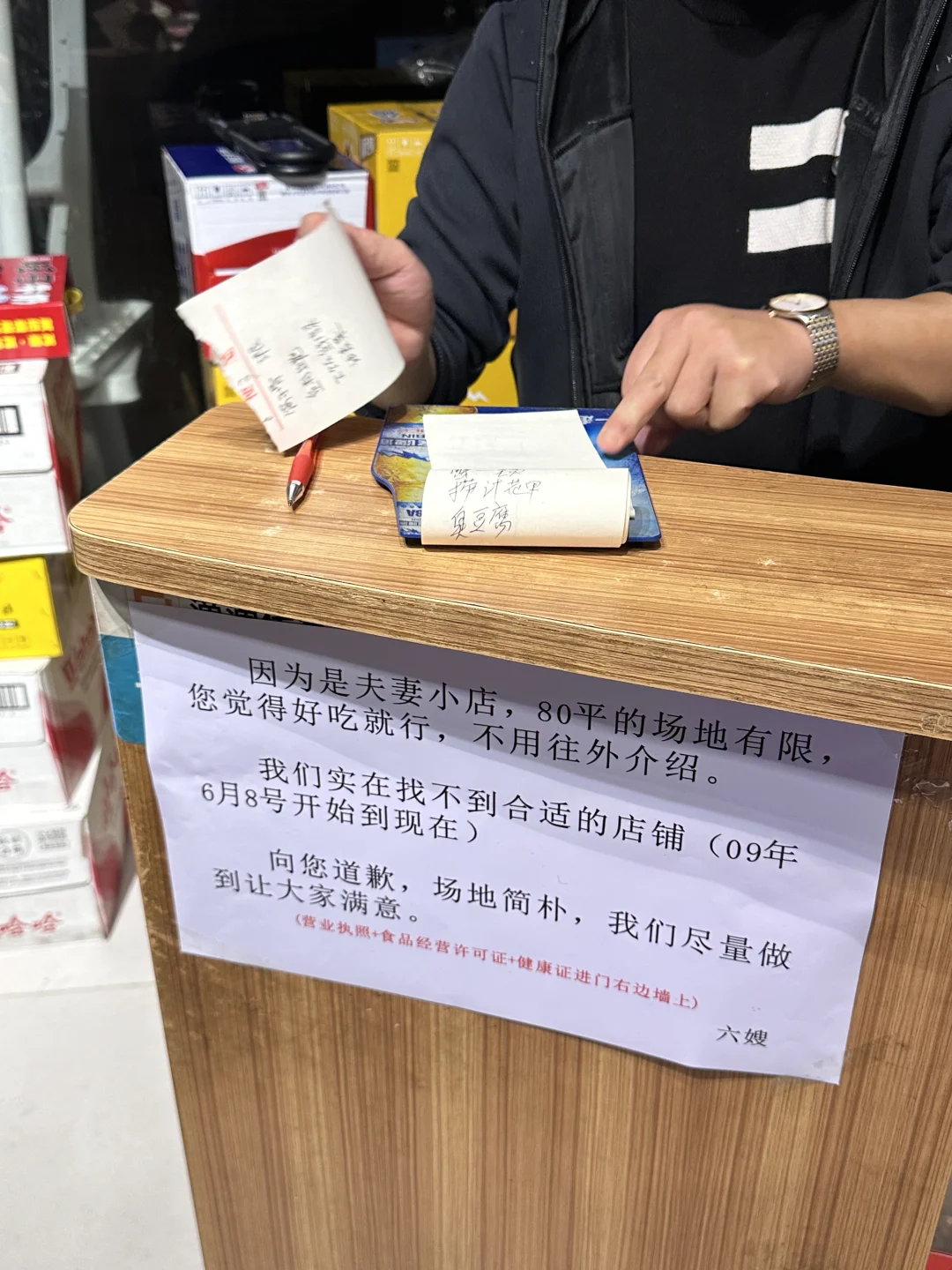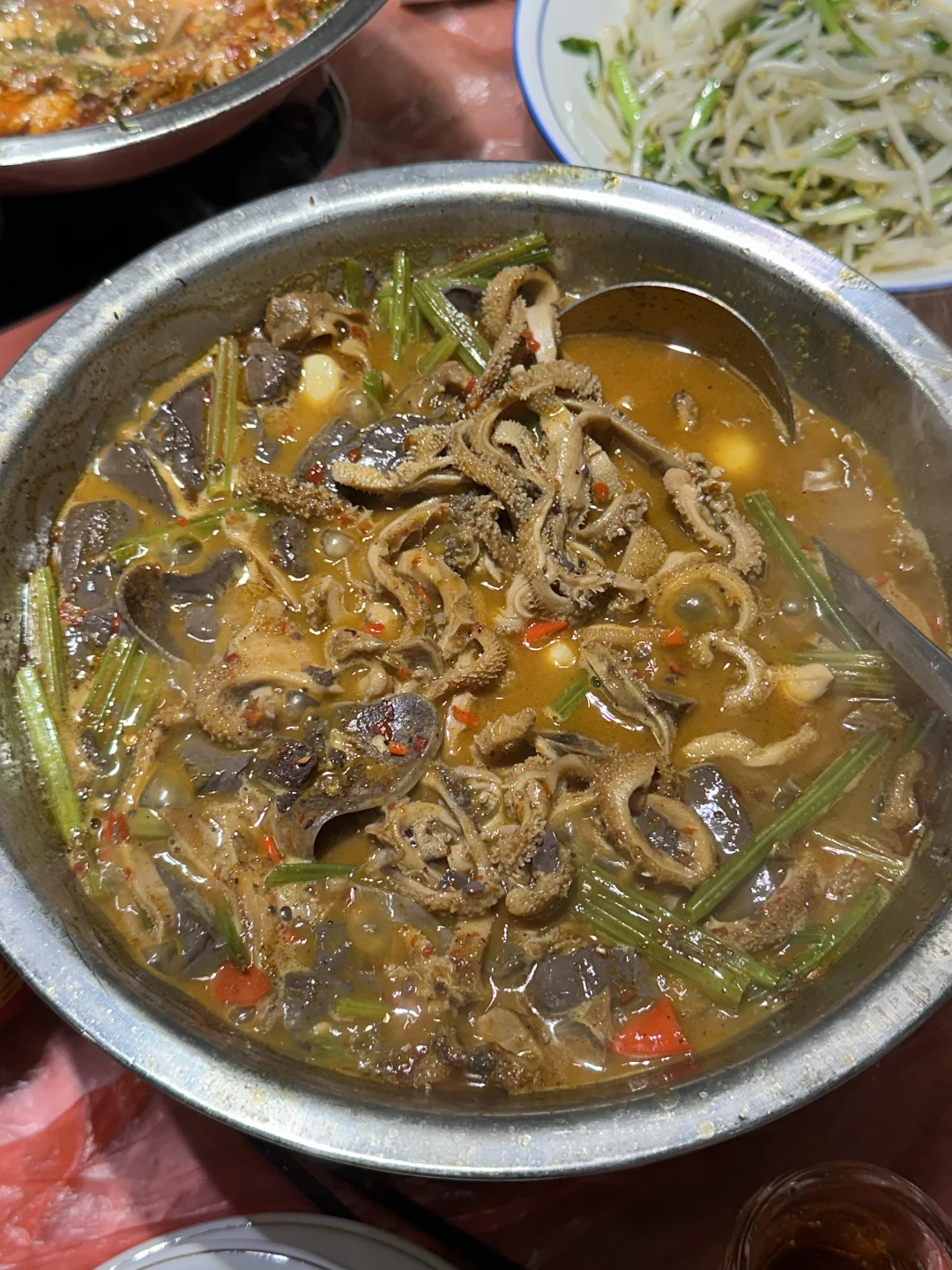 感谢我的好友不然我应该是找不到这么好吃的夫妻店。 好小好破的一家庭式小店,店里都是亲戚帮忙招乎生意 虽然店小(但服务特别好特别好!喜欢这种亲切感服务 5张内摆桌坐满了。我们坐的外摆桌 特别推荐他家的牛杂锅、鱼子鱼泡还有筒子骨、天冷吃牛杂锅真的特别暖和最后再伴点面很好吃、还有筒子骨跟我以往吃的完全不一样、我一不爱吃筒子骨的都吃了2个