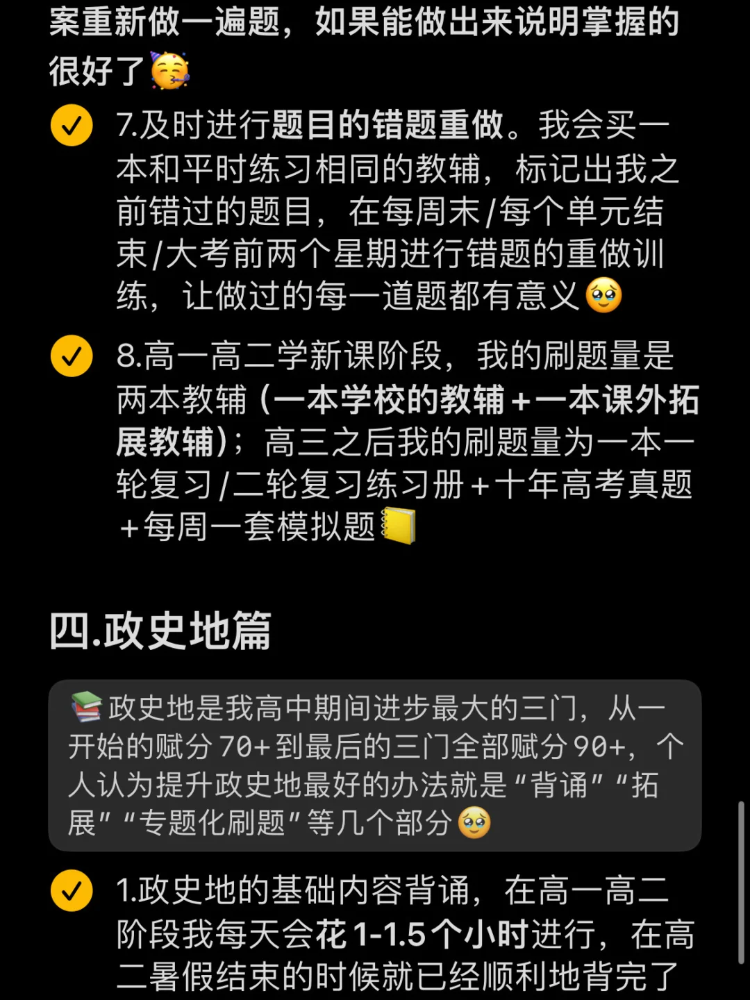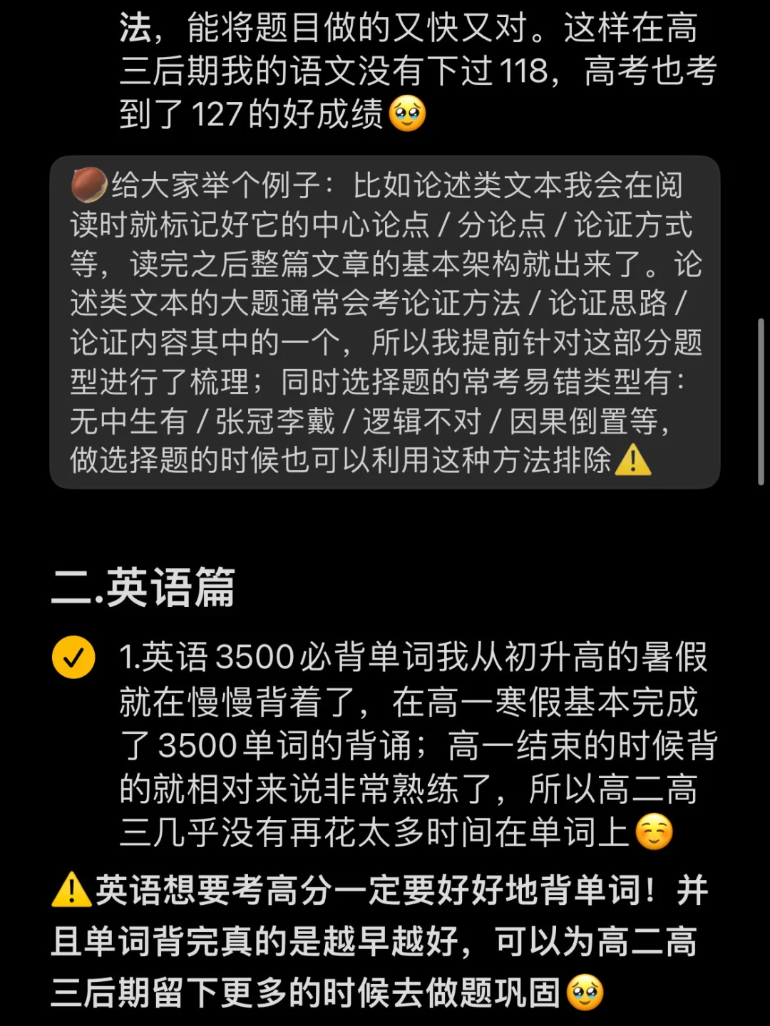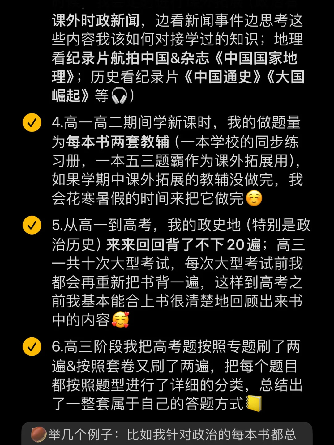 哈喽大家好! 之前给大家分享过一期【文科生要多努力才能高考600+】 今天再来给大家出一期相似的主题笔记 希望大家能够对“考上985”有具象化的概念🥰 -我之前也分享过很多其他的学习方法了☺️ 1️⃣高中各科学习方法 2️⃣一轮复习要多努力才能600+ 3️⃣文科生要多努力才能政史地270+ 4️⃣高中时间安排/计划制定 5️⃣高中一天如何度过 6️⃣高中文科答题模板 需要的宝可以直接去我的主页专辑查看🫶